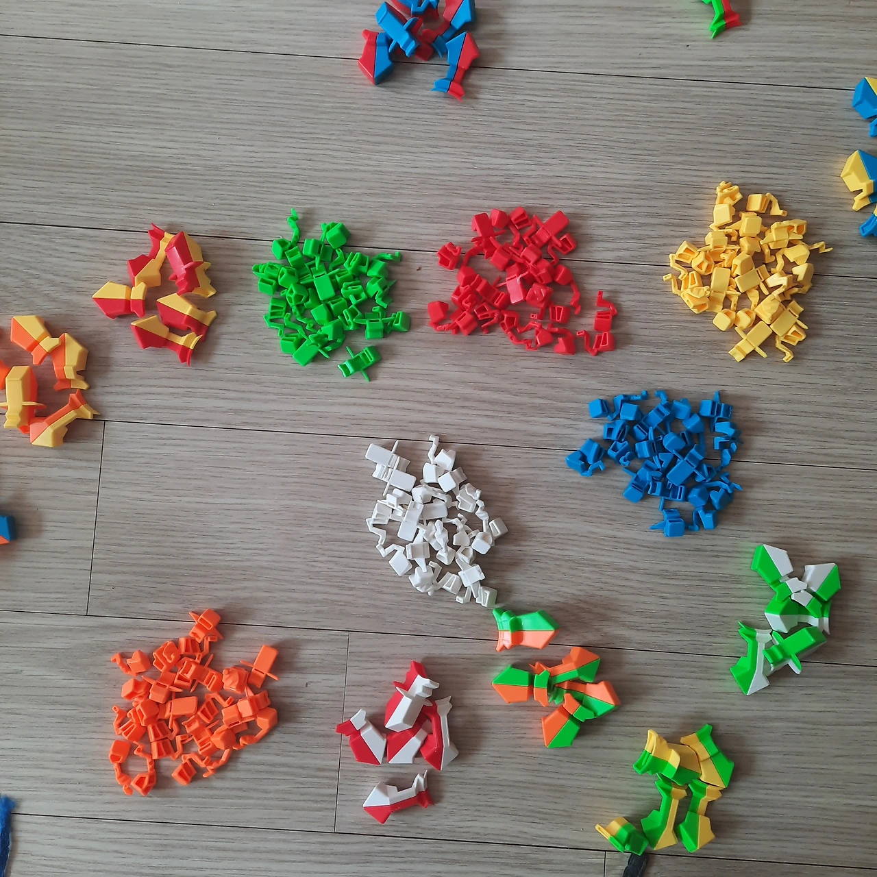 23. 3. 4. 1단계어느 정도 색깔별로 조각들을 모아놓고 남편과 아들은 이리저리 연구하기 시작했다.