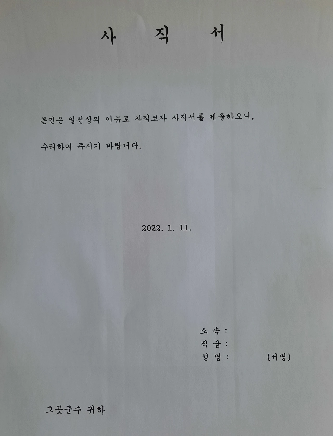 형식 빼면 시체라고 여겼던 공무원 세계인데 사직서 형식이 없다니 말도 안 돼.