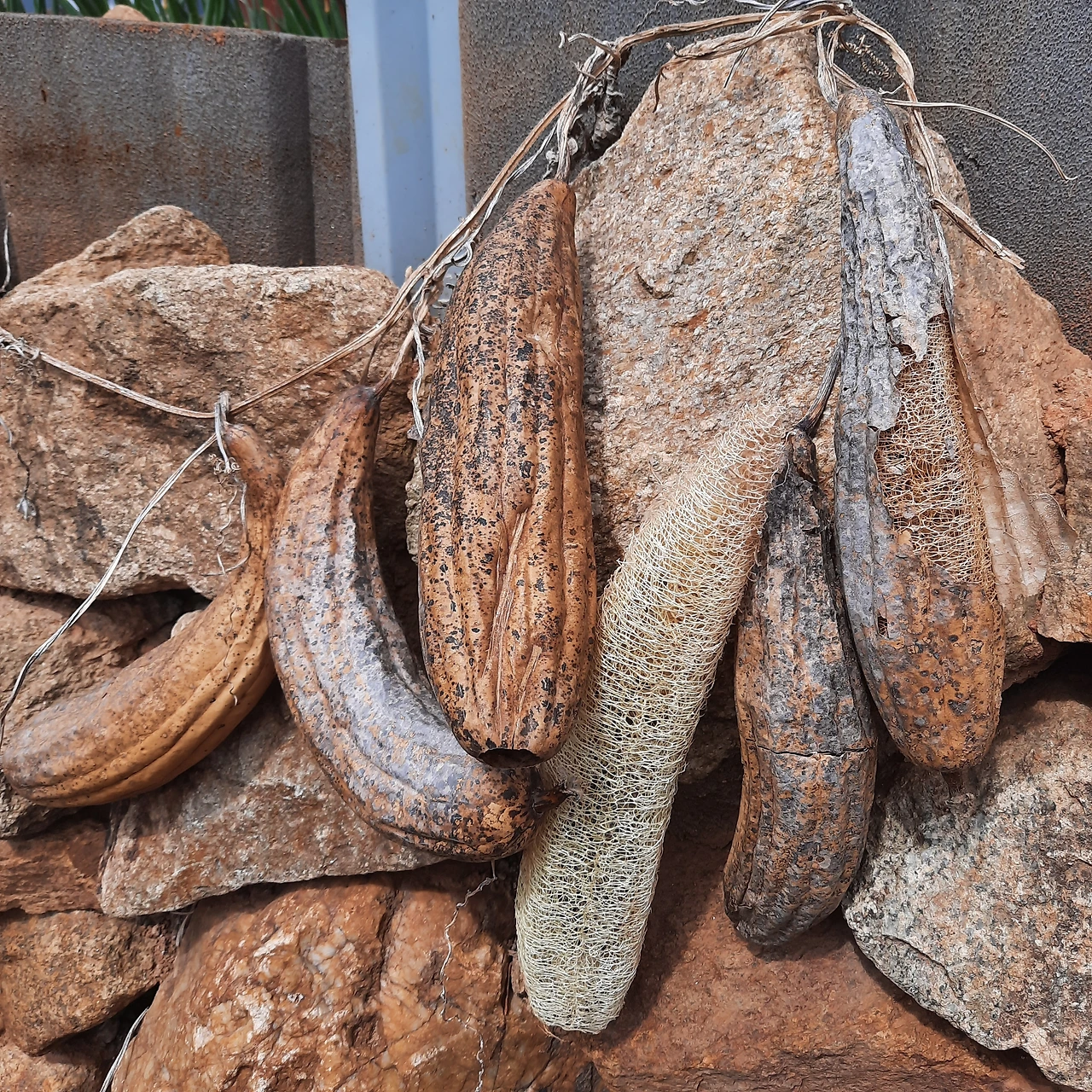 작년에도 여기저기에 수세미 씨를 심고 작년 겨울 느지막하게 거두어들였는데 얼마 전에 그 돌담 위에 몇 개의 수세미가 바싹 마르다 못해 푸석푸석한 모습으로 애처롭게 대롱대롱 매달려 있는 것이 아니가.