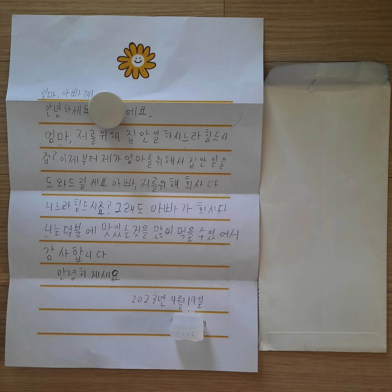'어버이날이라고 편지 써서 우체국에서 부쳤나?'