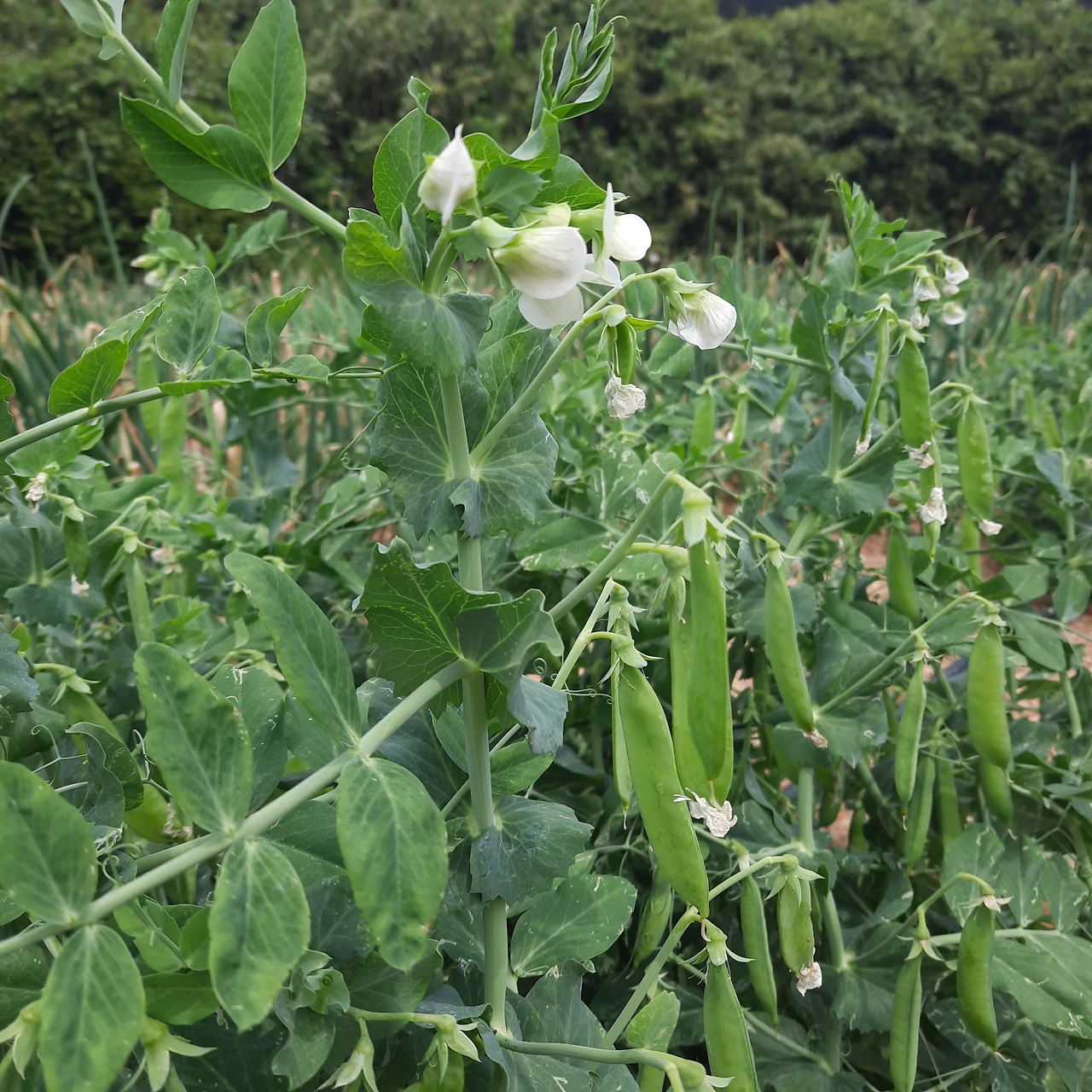 작년 겨울에 심은 완두콩이 한창 여물어가고 있다.