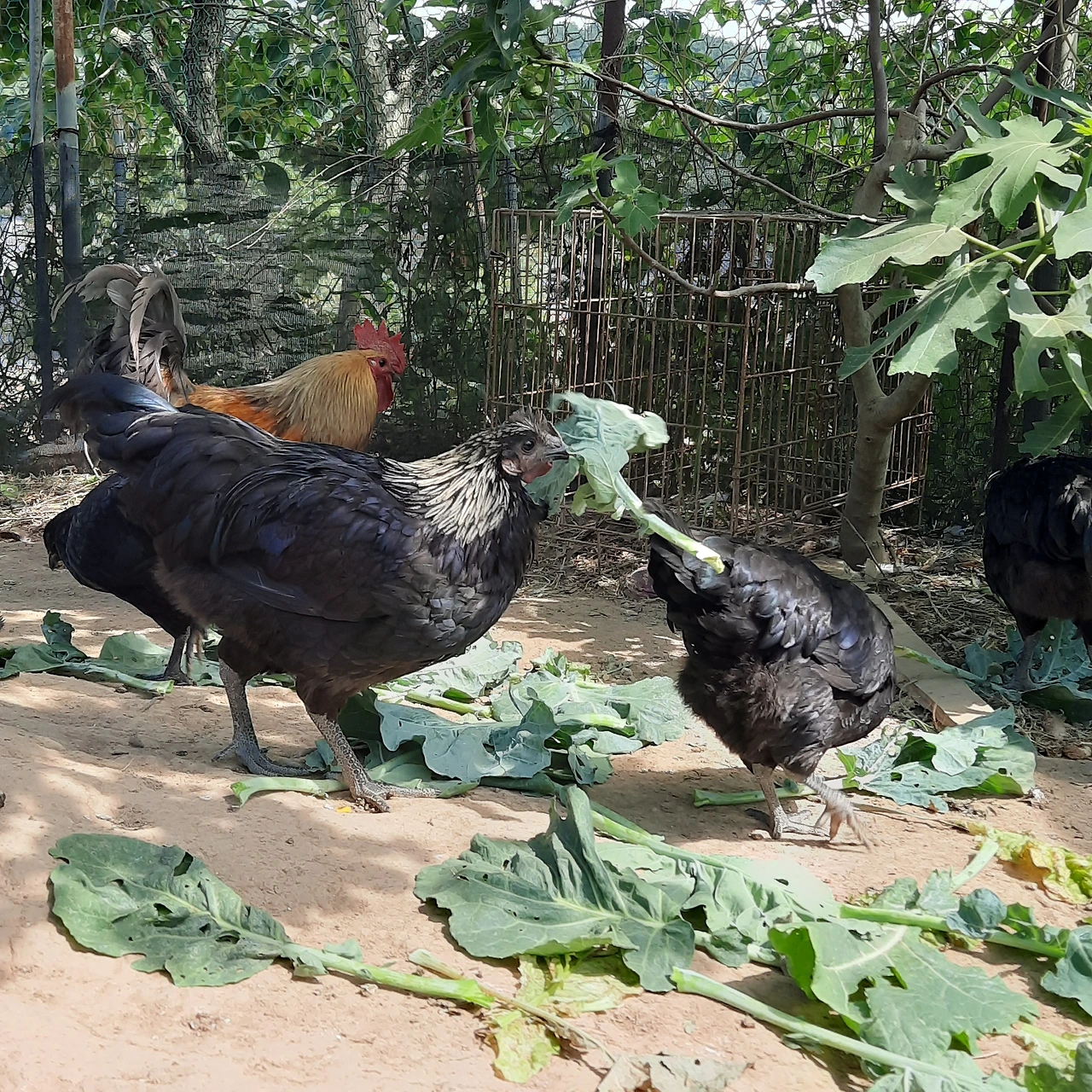이미 다 뽑혀서 닭들이 케일 잔치를 벌였다.