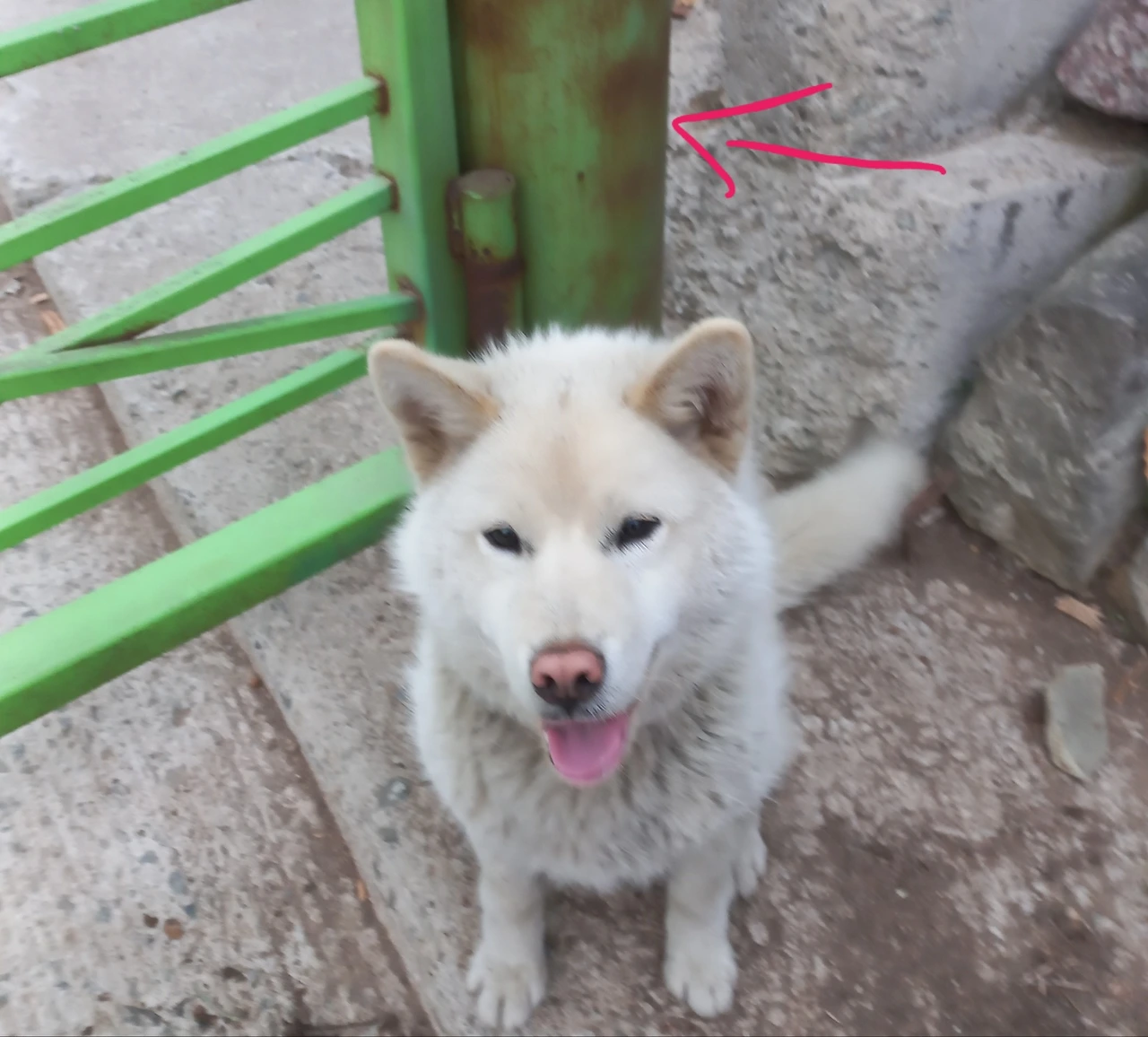 화살표가 가리키는 틈새로 드나드는 백구