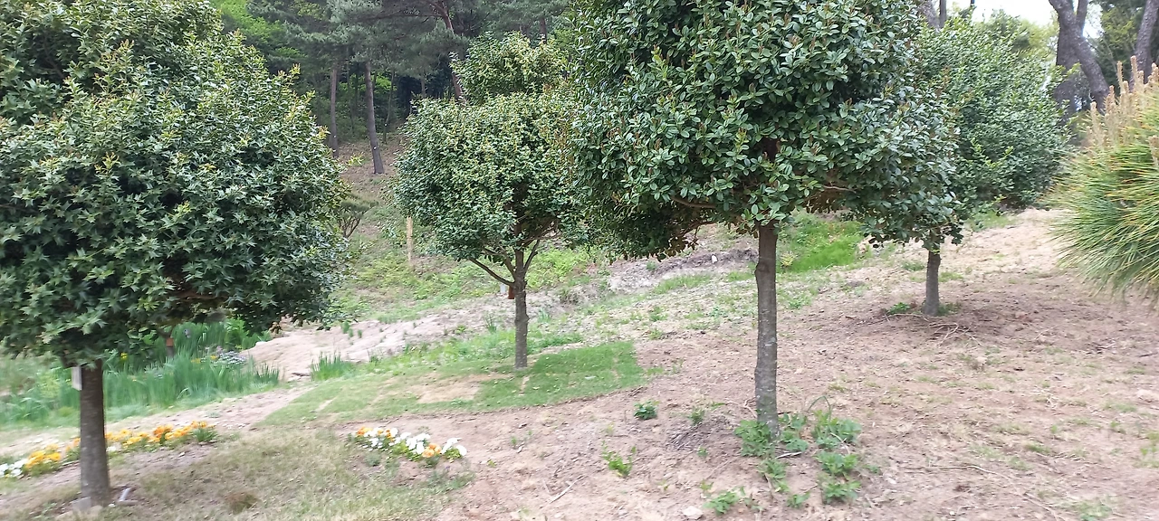 해가 뜨기를 바랐지만 동백나무 주변에 화초를 심기로 했으니 오히려 잘 됐지 뭐니. 강한 비바람도 아니고 살랑살랑 부는 바람과 이슬비는 화사한 꽃나무들에게 물을 뿌려주었으니 얼마나 좋은 일인지...