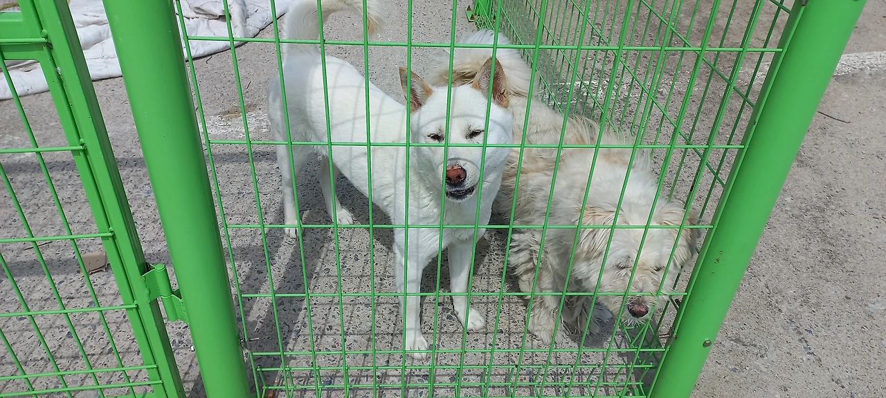 또 다른 백구인 빼꼼이(창살 틈으로 빼꼼 고개를 내밀고 반긴다며 남편이 그렇게 이름 지었다)도 내 차가 지나갈 때마다 펄쩍거리며 날뛰더니 차츰 움직임이 줄어서 요즘엔 몇 걸음 왔다 갔다 하는 정도다. 대신에 남편의 차가 지나갈 때마다 흥분해서뛰고 짖는다고 한다.