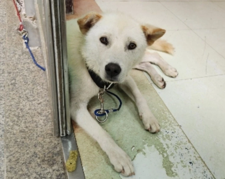 동물보호소에서 올린 유기견 공고 사진 속 백구의 모습. 전날 아이들과 뛰어놀던 행복한 표정을 다시 지을 날이 오기를... 공고번호:광주-광산-2023-00682