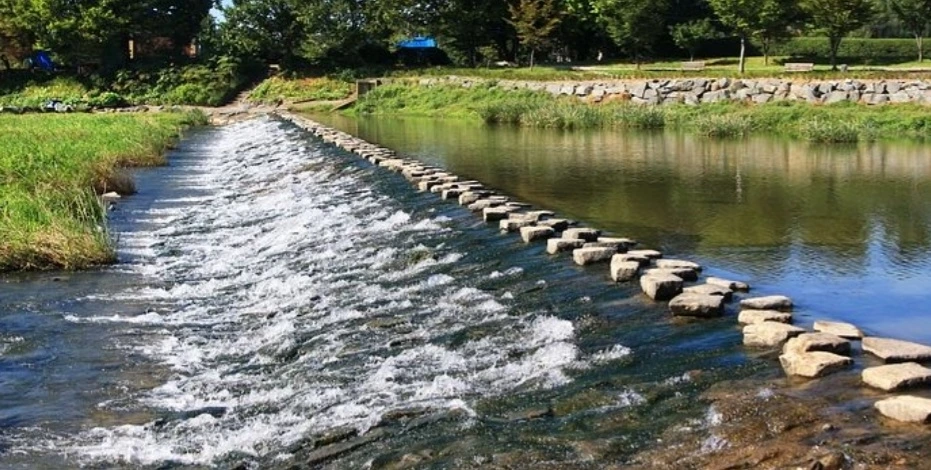 발길을 돌려 집 근처의 냇가로 갔다. 큰길에서 몇 미터 아래로 계단을 따라 내려가면 풀밭이며 자갈이 깔려 있고 그 옆으로 냇물이 흘렀다. 사람들은 자동차가 지나다니는 큰 다리 대신에 냇물 바로 위로 낮게 놓여있는 뽕뽕다리를 건너 다니기도 했다. 학교 가는 길도 그렇게 가면 더 가까워서 나도 자주 그 다리를 건넜다.
