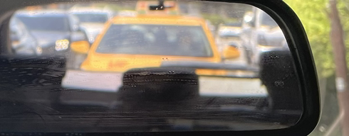 백미러로 큰 트럭들이 줄지어 내차 뒤에 서 있는 것이 보였다.