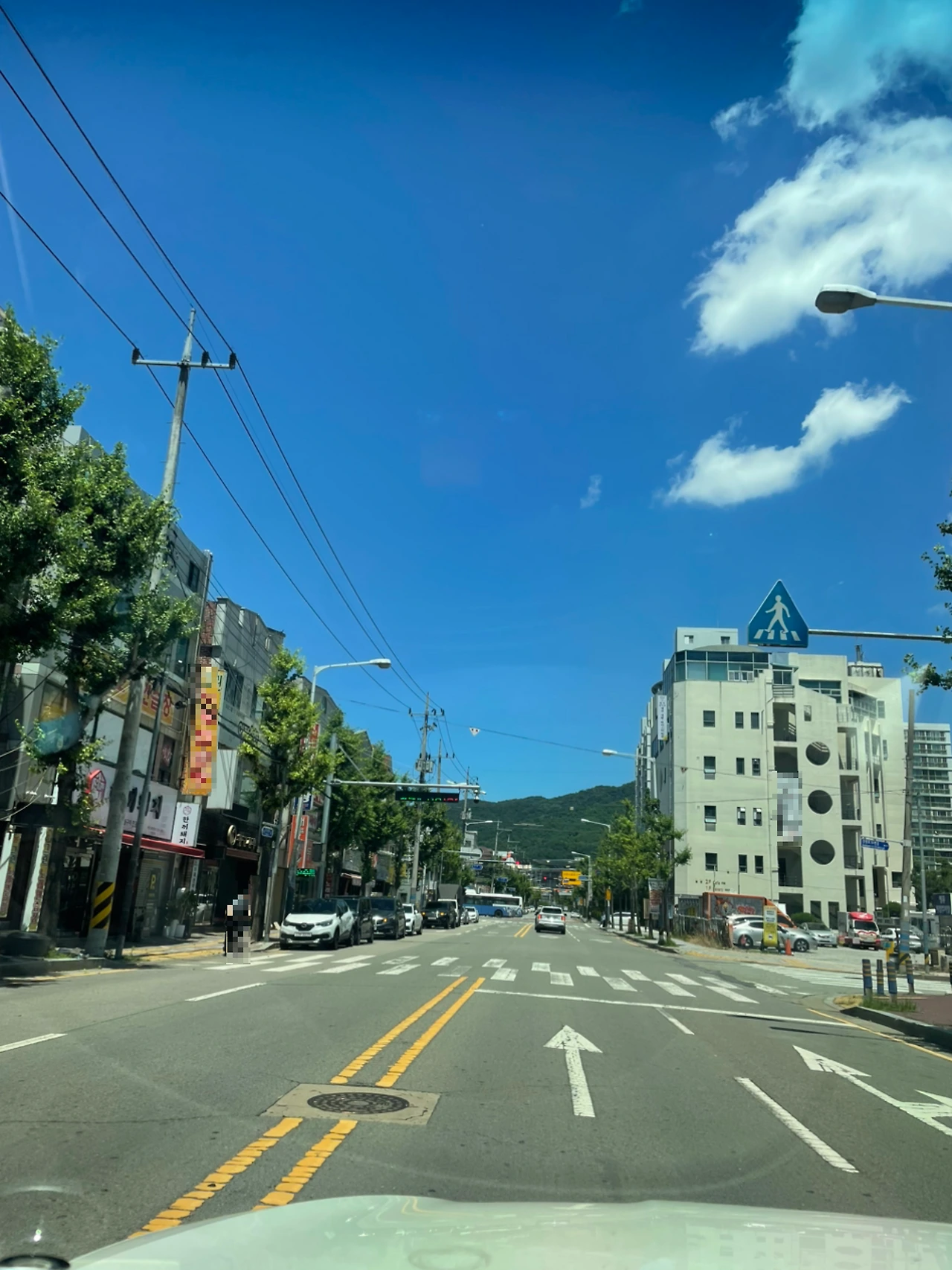 온갖 구름에 관심이 팔린 사이 앞차가 이상하다.