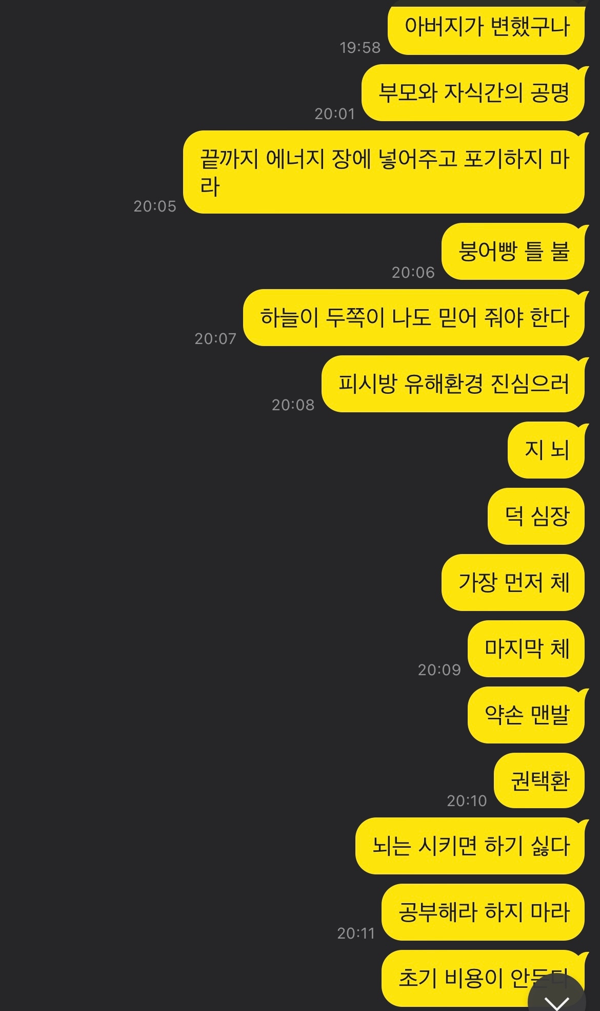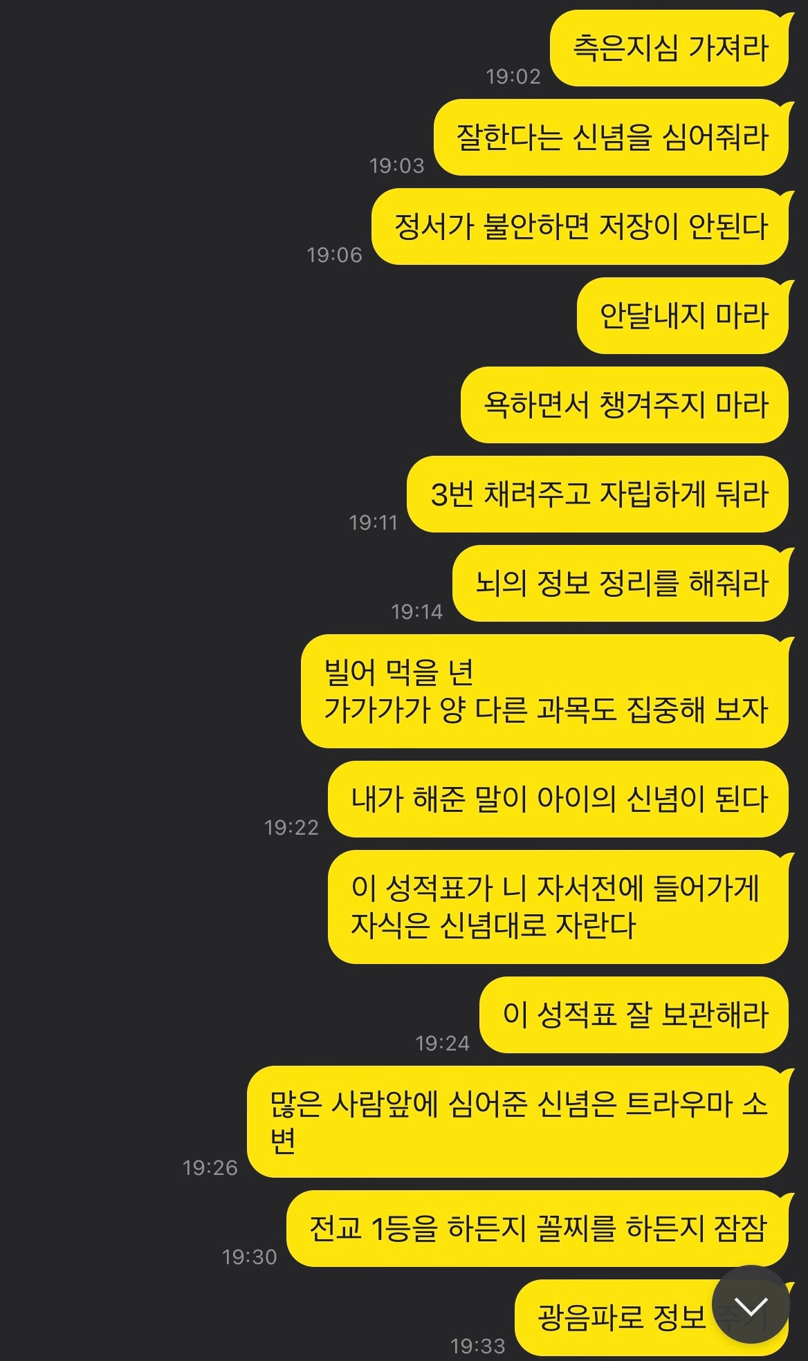 -이거 잘 보관해 둬라. 다음에 네가 공부를 잘하게 되면 이런 시절이 있었다는 걸 보여주는 자서전 자료가 되게 해라.