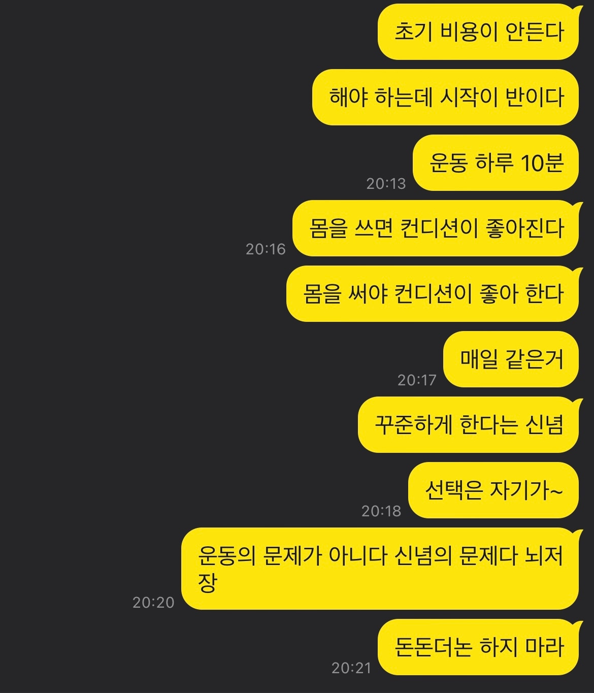 고3인 아들에게 수능전까지 하루 10분간 운동을 하라는 부탁을 했습니다. 그것만 꾸준히 지키면 네가 원하는 대로 놀아도 된다고 말했다 합니다.