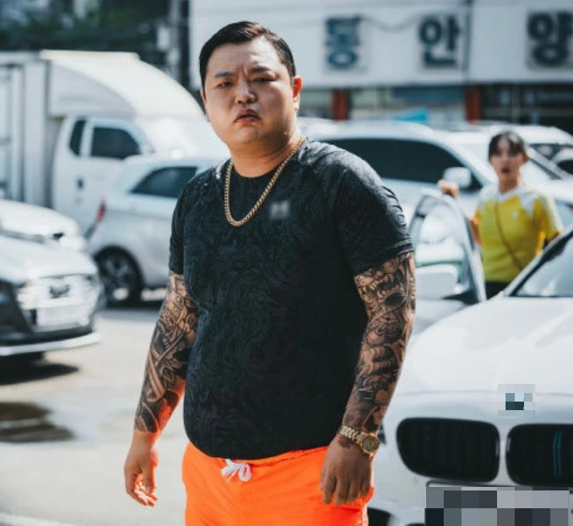 이 용무늬며 청색 빨강색 꽃이 그려져 있고 푸르죽죽한 이파리 타투를 설마 하는 건 아니지.