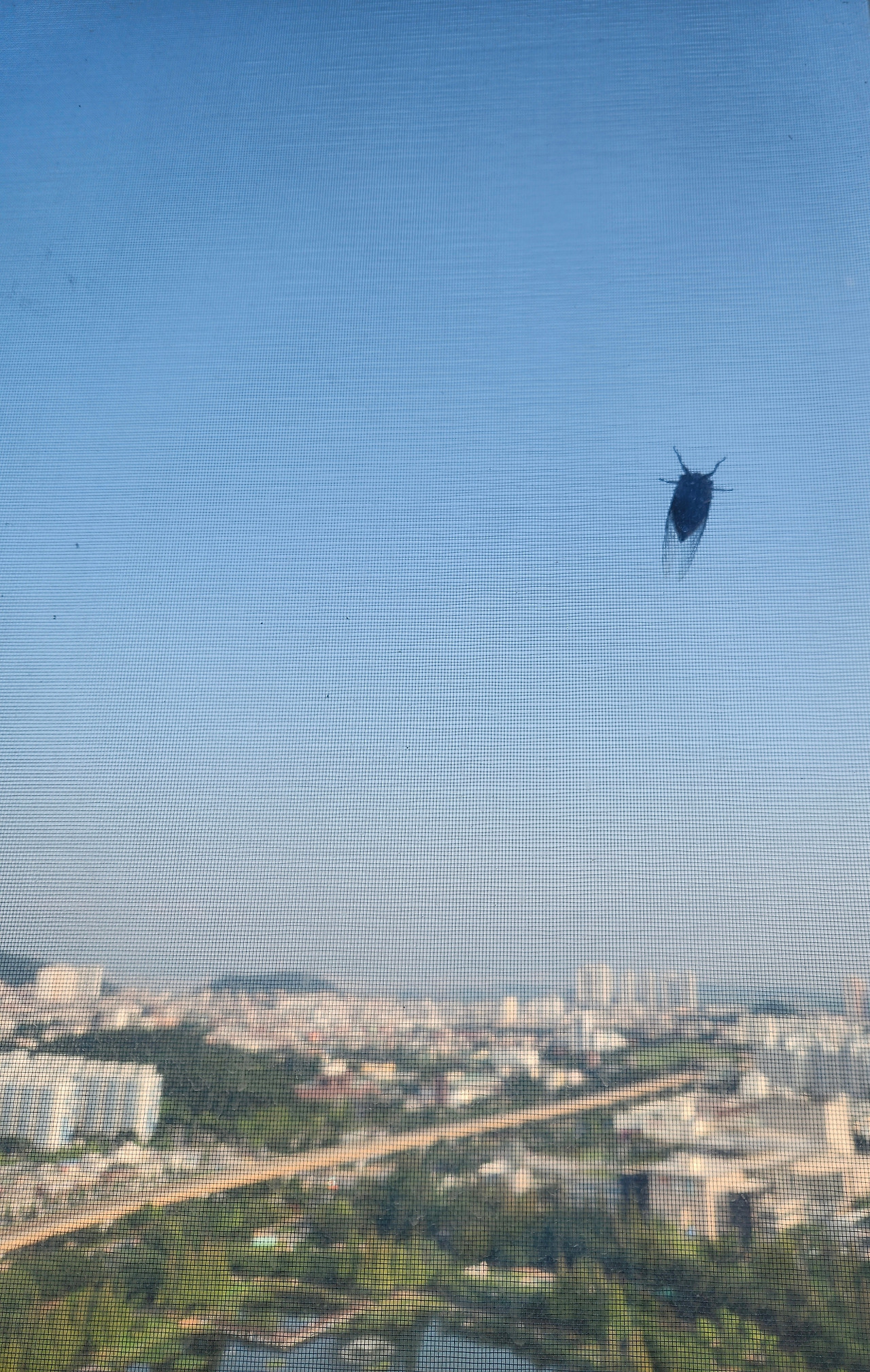 지금 딸이 거실창문에 붙은 매미 사진을 보내왔어요.