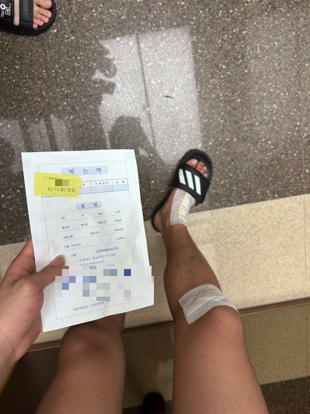 -벌써 무릎은 진물 올라오고 여름이라 염증 생기거나 잘 곪을 수 있으니깐 소독 열심히 하고 메디폼 붙이래요.
