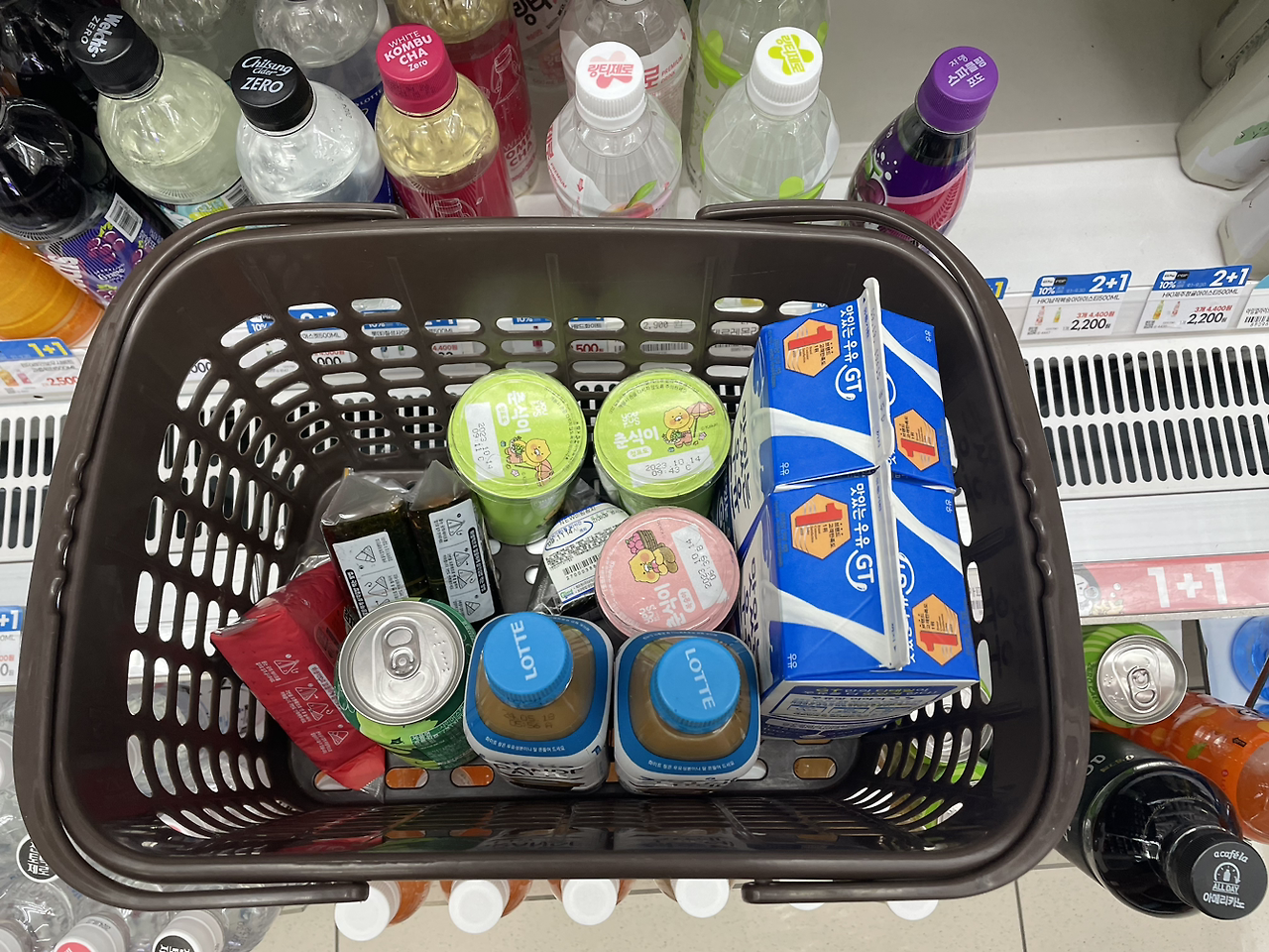 "S 편의점 입구야. 뭐 사줄까? 삼각김밥 어때?"