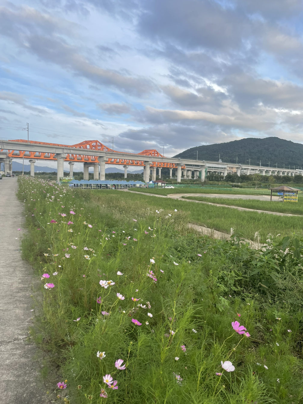 바람이 부는 게 옷을 많이 껴 입었는데도 춥기까지 하다. 해반천에서는 속도를 내지 않고 달렸다. 오후에 마실 나온 사람들과 애완견이 많았기 때문이다. 본격적인 도심을 벗어나니 탁 트인 들판이 나타나기 시작한다. 해가 벌써 지려고 하는지 낮이 많이 짧아진 게 바로 실감이 난다. 돌아오는 길에 사진을 찍으면 날이 어두워질까 봐 잠깐 멈춰 몇 컷을 찍었다.