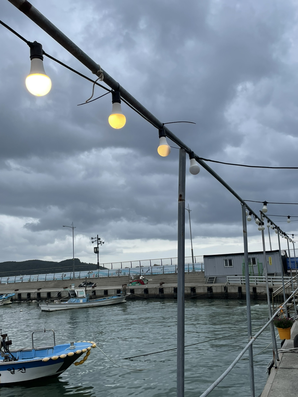 글을 쓸 생각을 하면서 음식이 나오기 전 나는 여러 장의 사진을 찍었다. 밑으로 슬리퍼를 신고 내려가서 바닷가에 설치된 작은 전구들을 바라보며 정말 오늘 잘 따라나섰다는 생각이 들었다. 낯선 바다의 아름다운 모습 속에서 익숙함에 젖어있던 마음들을 내려놓았다.