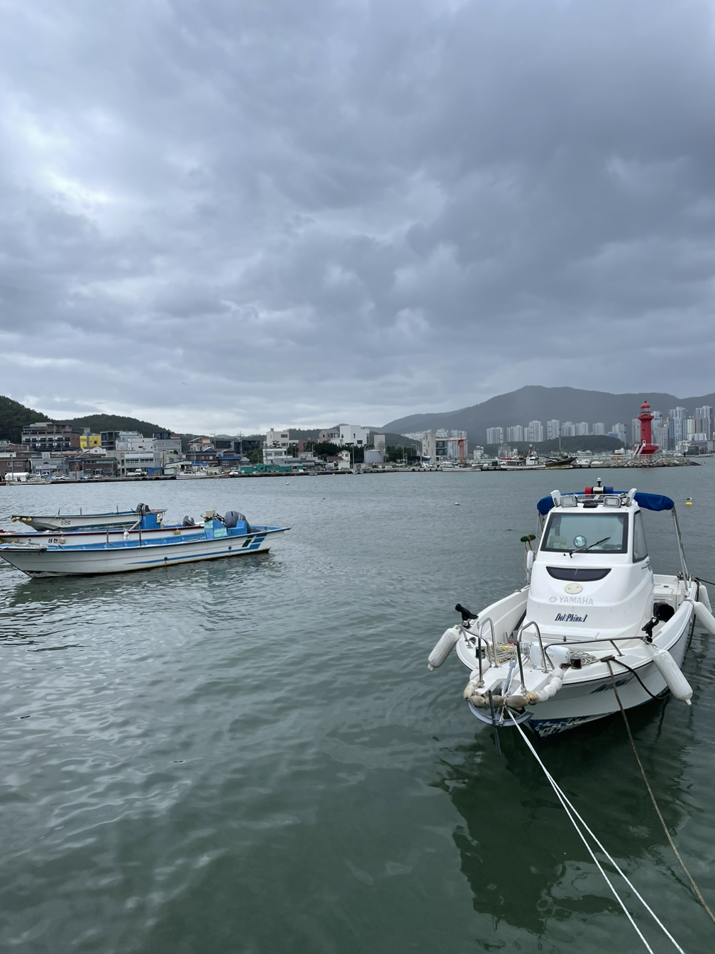 조금 더 달려가니 등대와 바닷가 근처 식당에 갔다. 바람도 많이 불어서 출항하지 못한 배들이 묶여 있었다. 어촌계에서 허락해 준 가건물 여러 동이 줄지어 늘어선 곳 중에서 우리는 7번 호실의 식당에 들어갔다.