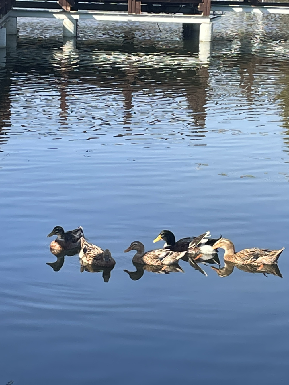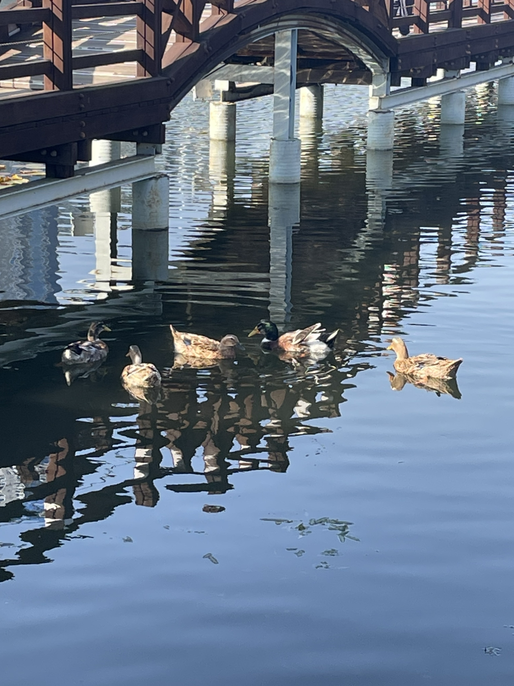 한 마리가 혼자 있는가 하면 무리 속에서 혼자 고함을 치기도 하고 따로 두 마리만 구석에서 다정하게 물속을 헤집고 다니기도 한다. 늘 3마리가 있었는데 오늘 보니 최소 10마리가 되는 듯하다.