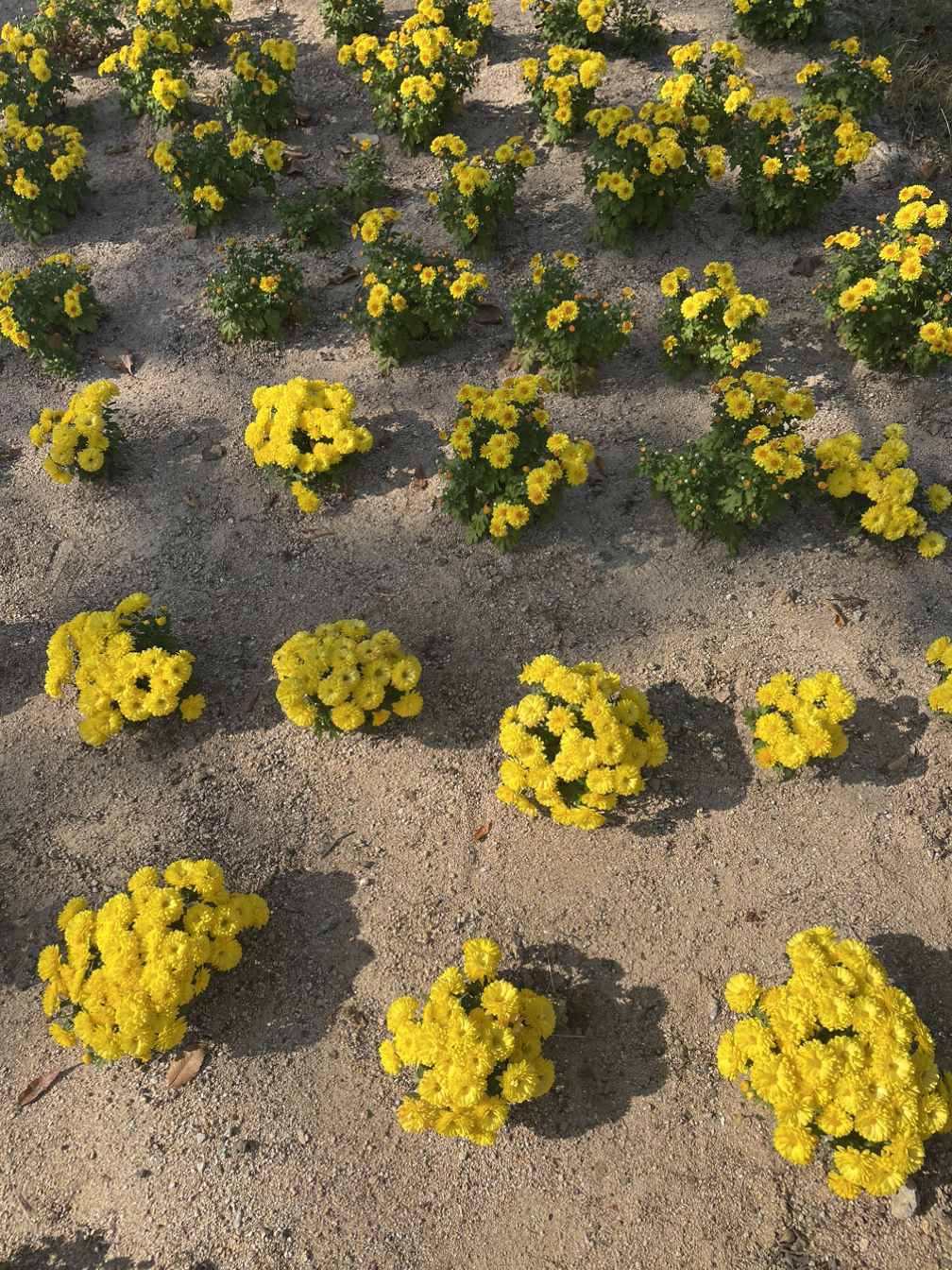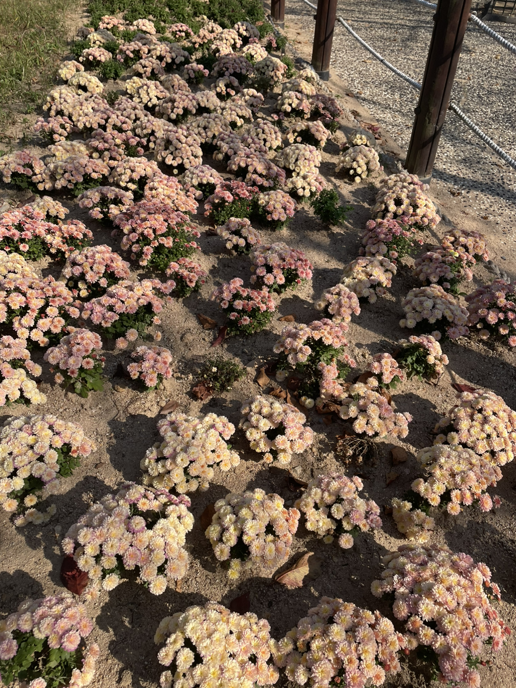 대부분 주말에 보니 매시 정각에 20여분을 분수쇼를 하고 밤에는 컬러음악분수쇼를 한다. 오후 2시 남짓 되었다. 이런 수요일 오후는 누구 차지일까. 입구에 들어서니 어르신 세분이 등나무밑 벤치에서 쉬고 계신다. 호수를 따라 도니 이름을 알 수 없는 꽃들이 심겨 있다. 벤치마다 등산을 갔다 오신듯한 알록이 옷을 입으신 60대 초반으로 보이신 분들이 옹기종기 모였다. 홀로 지팡이 들고 앉아 계신 어르신. 임산부에 남편과 강아지를 데리고 산책나온 부부. 색색깔의 국화꽃을 따라 도니 앞머리에 양껏 힘을 주신 어머니 3분이 연신 분수를 중심으로 사진을 찍고 있다.