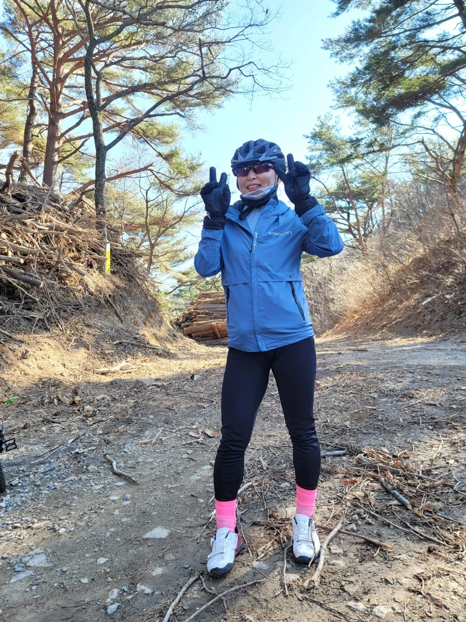 10월부터 거의 안 빠지고 라이딩을 따라다니고 있다. 타고난 체형을 원망해서 무엇하랴. 어깨도 넓고 상체에 살도 많은 체형이다. 거기다 어릴 때부터 쌀가마니며 푸세식 통시 똥도 똥장군에 담아 리어카로 퍼 나르고 겨울이면 수도가 터져 동생과 물 길으러 다니고, 산에 나무(땔감)도 많이 하러 다닌 일꾼이다 보니... (무슨 얘기를 하려고 내가 이런 말을 하는 걸까.) 여튼 근육이 유달리 많이 발달했다. 또한 헬스를 좋아해서 체력을 유지하고 틈나는 대로 해반천을 달리다 보니 기초체력이 남아 있다. 내산 임도 길을 눈에 미끄러워 한 번 돌부리에 걸려서 한 번 기억 안나는 한번 총 3번의 아주 짧은 시간만 끌바를 하고 완주를 했다는 거다. 내가 생각해도 평소 운동량 때문인지 오늘 자전거로 산을 오르는 실력이 일취 월장 했음을 느꼈다. 끌바는 1-2분 미만이다. 멈췄을 때 잠시 돌아서서 누가 오르막에서 자전거만 잠시 잡아주면 다시 산길을 달렸다.