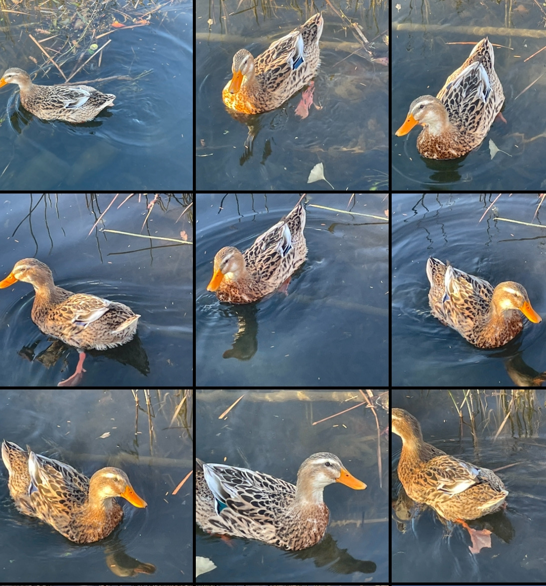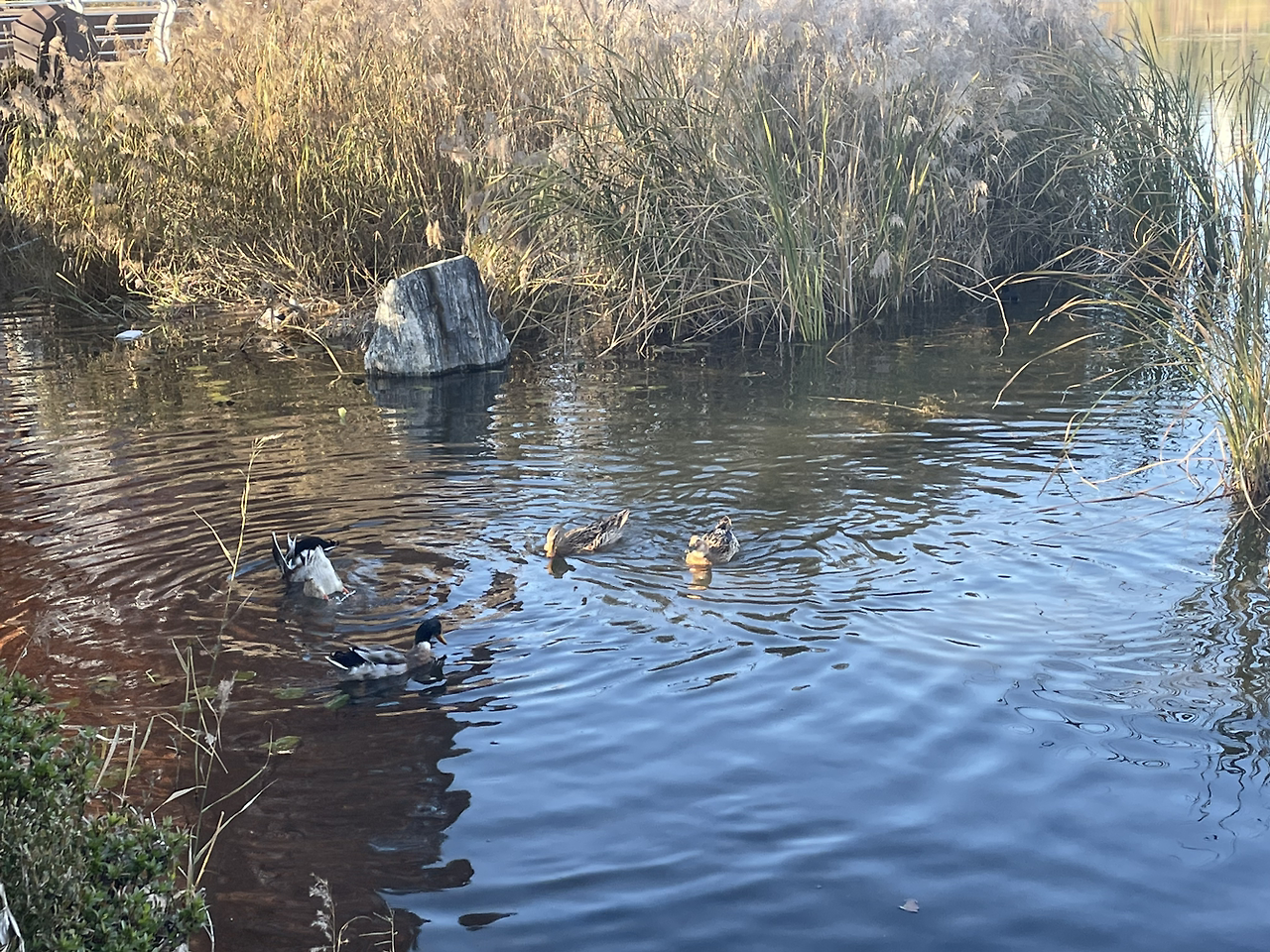 그전에 봤던 청둥오리를 세어 보았다. 10마리다. 비슷하게 생긴 두 마리가 목에다 키스를 서로 퍼부으며 빙그르르 돌고 있다. 순식간에 본 장면이라 사진을 찍을 시간도 주지 않는다. 구경하던 젊은 남녀가 갈 길 잃은 듯 넋놓고 보고 있다. 나처럼 말이다. 그리고 한 마리가 호숫가로 혼자 나와서 먹이를 찾으며 물질을 한다. 내가 가만히 쳐다보자 고개를 갸우뚱거리며 눈을 껌벅인다. 핸드폰을 연신 눌러보지만 얻고 싶은 장면은 내 손에서 빠져나갔다.