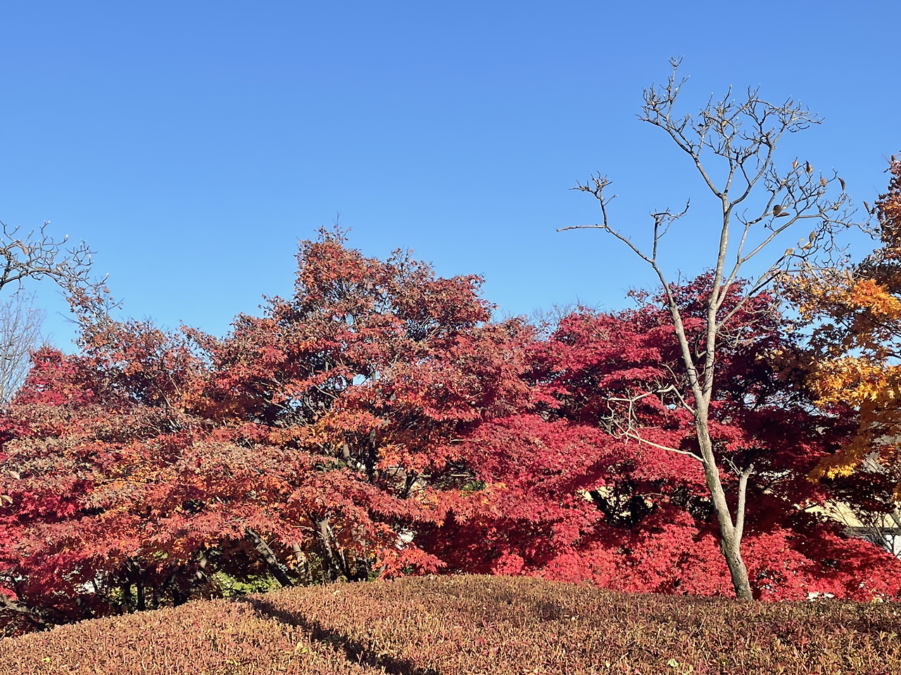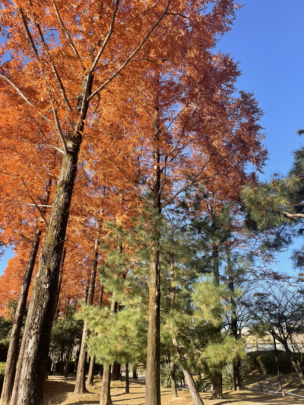 횡단보도를 건너니 단풍나무 종류옆에 사람들이 몰려 있다. 저마다 배경사진을 찍고 있는 듯 보인다. 한차례 몰려간 사람들 이후 나도 멀리서 아름다운 와인빛과 짙은 주홍빛이 감도는 나무를 찍어봤다.