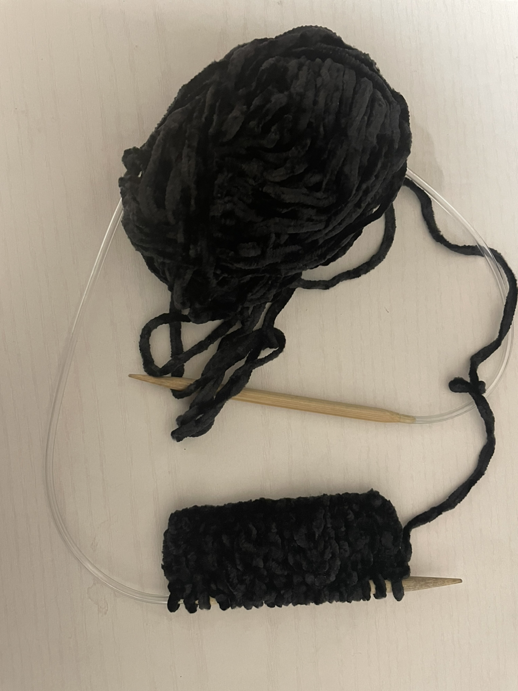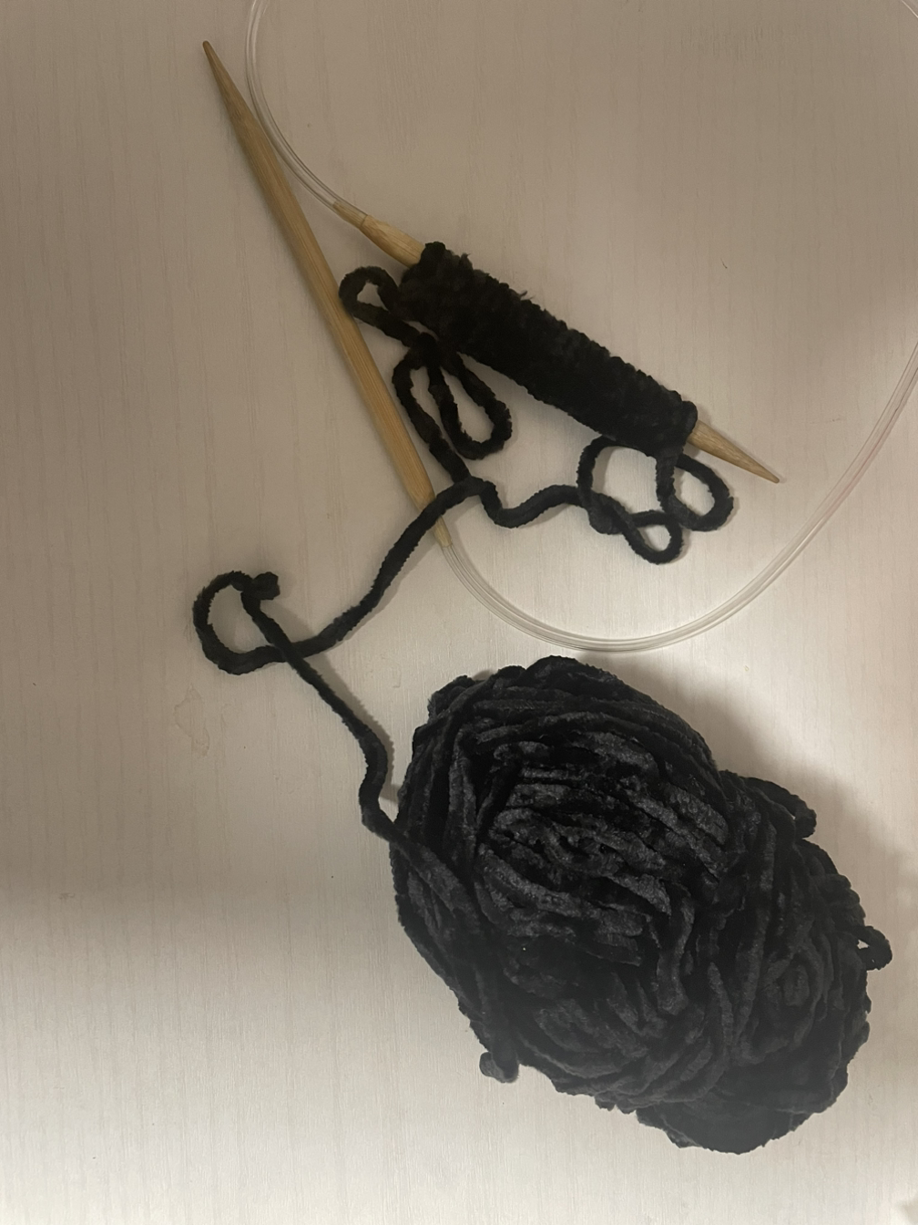 "크리스마스 전까지 목도리를 짜야한대요... 어젯밤에도 얼마나 불러 재끼는지. 또 저걸 산다고 저를 D이소에 데리고 가서 같이 골랐어요."