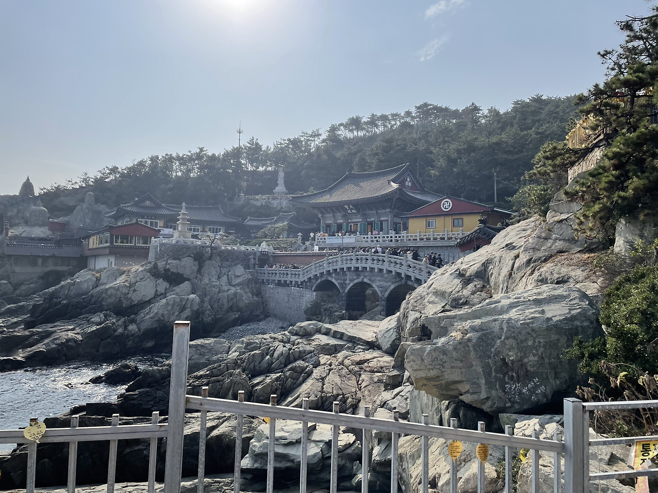 큰 호텔이 있었고, 야외 수영장이 밑에서 보였다. 파도는 하염없이 철썩이고 내 마음은 봄 아지랑이를 만난 마냥 하염없이 어지럽게 떠올랐다. 저마다의 자세로 사진을 찍느라 여념이 없었다. 2주 전 일요일은 그야말로 라이딩하기 딱 좋은 봄날이었다. 해변길을 쭉 따라가니 해동 용궁사가 나왔다. 사람이 그야말로 발 디딜 틈이 없었다. 이렇게 경치 좋은 곳에 사찰이라니. 사람들은 좋은 기를 많이 받는 곳이라며 독사진을 찍어댔다.