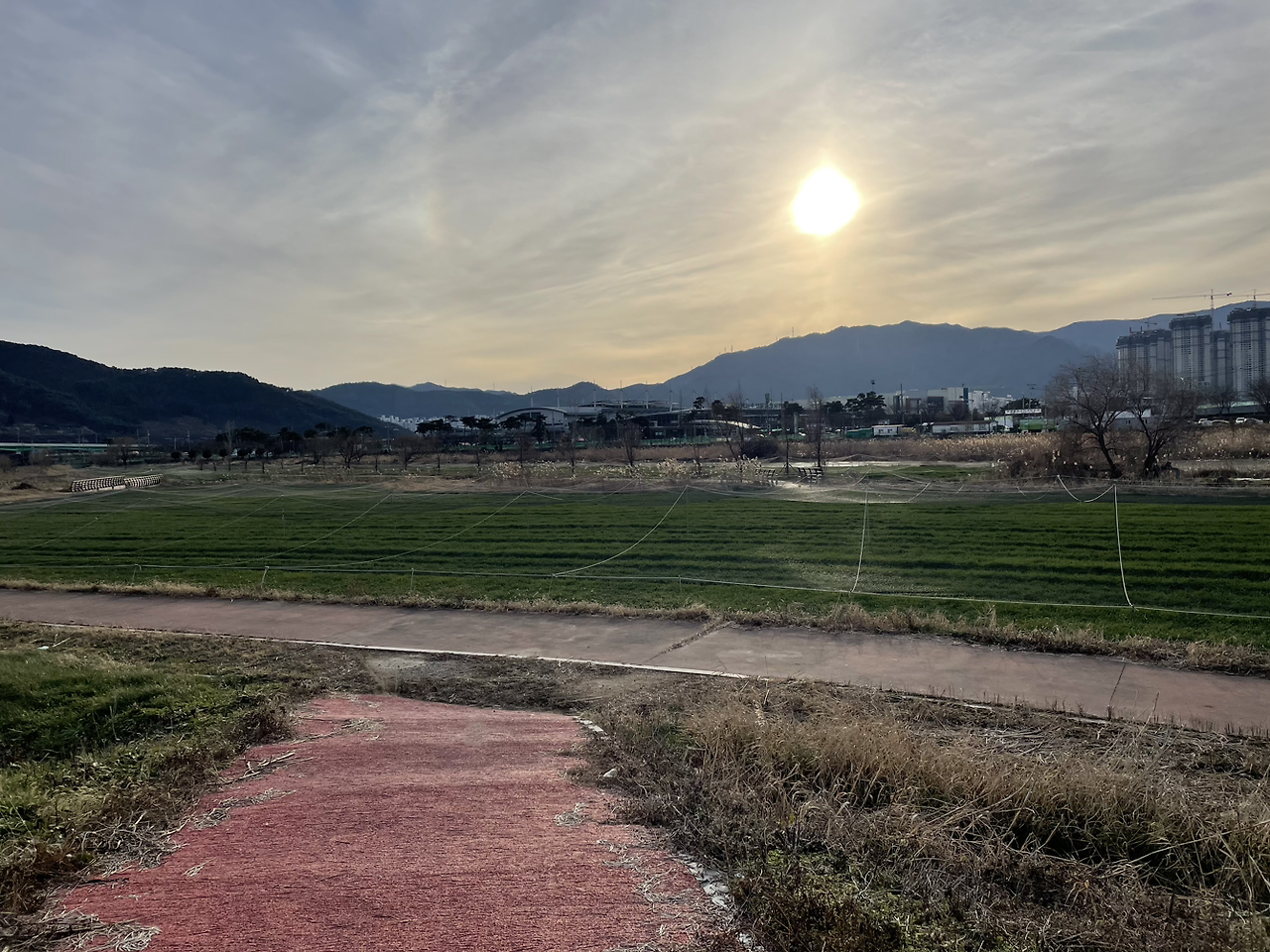 오후 1시에 퇴근하고 집에 왔다. 요즘 무기력한 기분이 살짝 왔다. 여러 번 고민 끝에 자전거 라이딩 복으로 갈아입었다. 오후 2시 46분에 출발하였다. 해반천으로 내려가니 골바람이 불었다. 미간이 쪼개지는 느낌이 들었다. 너무 추워서 머리가 아파왔다. 머릿속 상상으로는 유리창이 무언가에 맞으면 깨지는 금같이, 보이지 않게 미간부위에 정신을 못 차리게 깨는 느낌이었다. 좀 더 있으니 찢기는 느낌마저도... 속도를 낼 수가 없었다. 순간 포기할까 생각이 든다. 속도를 줄이며 자세를 낮추고 서서히 찬바람에 적응시키고 달려 보기로 했다.