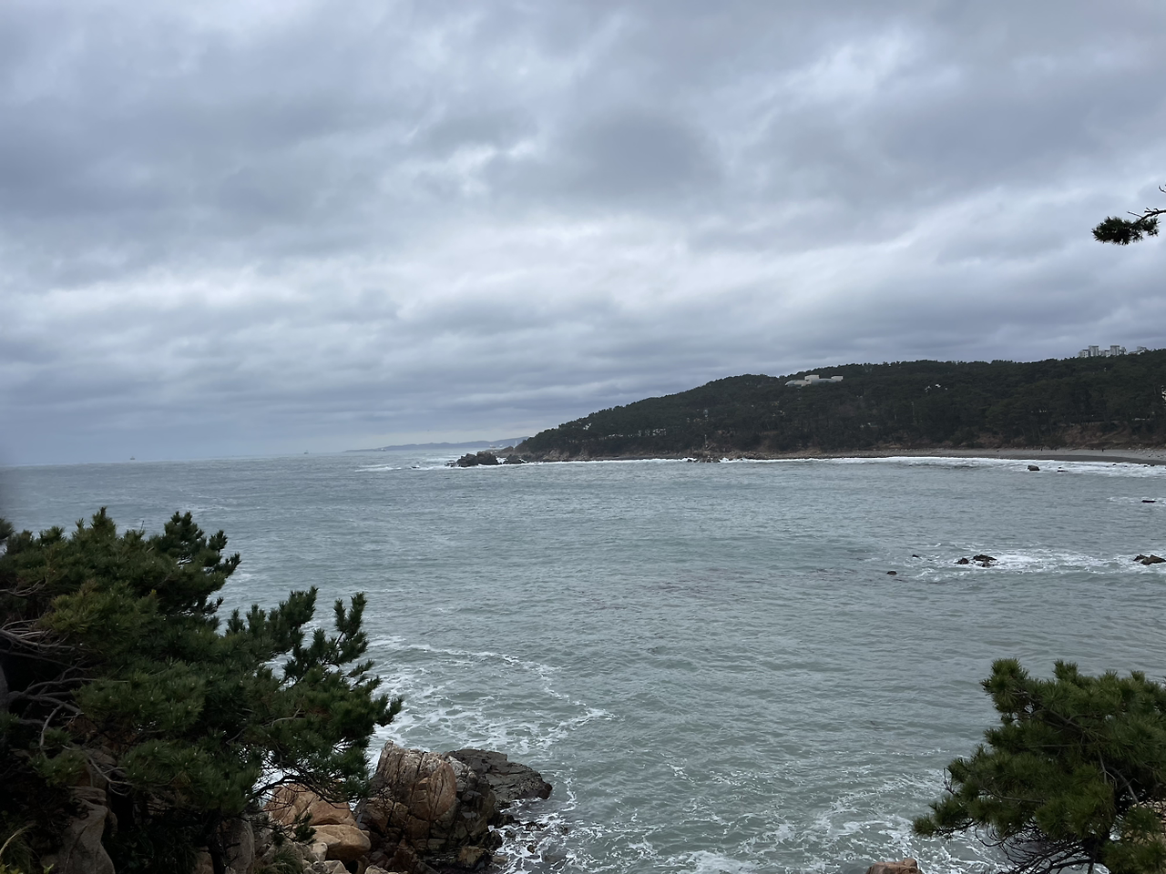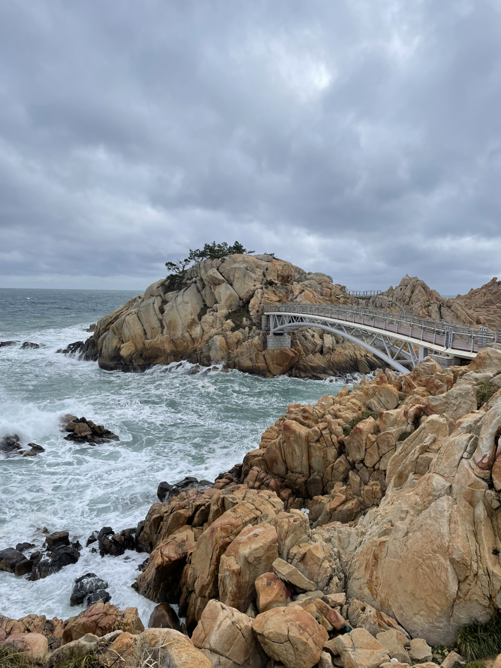 그리고 솔밭길을 잠시 타고 가니 흔들 다리가 나왔다. 전혀 흔들리지 않게 생긴 철제 다리였으나 바람이 너무 불어서 중앙 근처를 통과하자 흔들렸으며, 아래로 바닷물이 선명히 보이기 시작하자 나는 시선을 거두고 앞만 보고 걸었다. 무서워서 밑을 보면 걸을 수가 없었다. 그렇게 바람이 불고 추웠으나 많은 관광객이 우리 뒤를 이어 다리를 건넜다. 이후 다시 자전거를 타고 계단길은 끌바를 하여 대왕암에 도착했다. 대왕암 바로 앞에는 가지 못하게 펜스가 쳐져 있었다. 많은 사람의 이동으로 훼손된 것 같았다. 역시 많은 인파들이 사진을 찍기에 여념이 없었다. 때론 멈춰 서서 혼자 가만히 시간을 보내고 싶지만 일행이 있으니 우린 서둘러 다음 코스로 이동했다. 핸드폰으로 확대해서 파도를 보니 하얗게 부서지는 포말이 깨끗했고 멀리 보이는 수평선을 타고 오는 너울이 알 수 없는 설렘을 일으켰다.