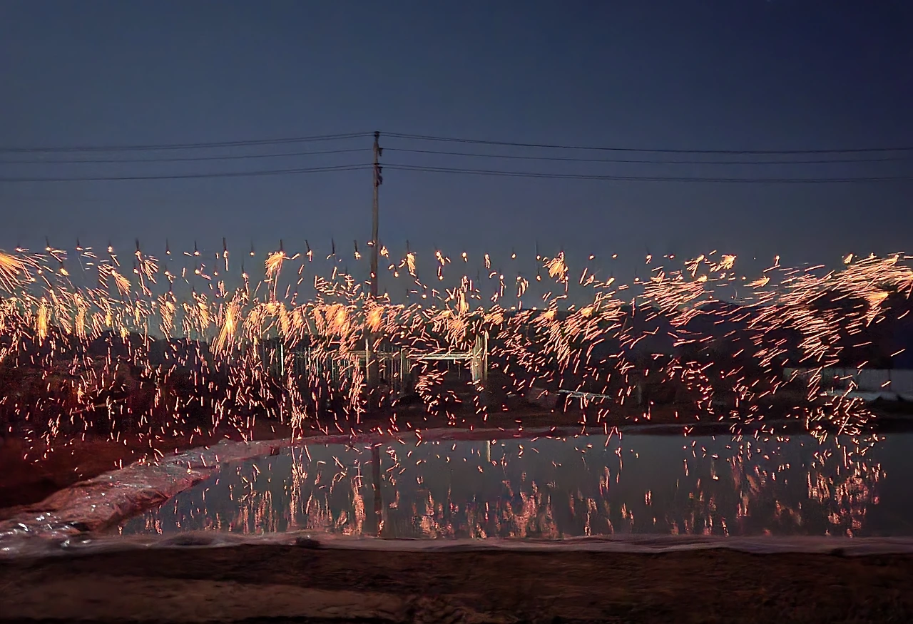 줄을 잡은 어르신들이 둘, 셋! 하고 촤르르 줄을 흔들어 불꽃을 폭포처럼 만들어주던 것은