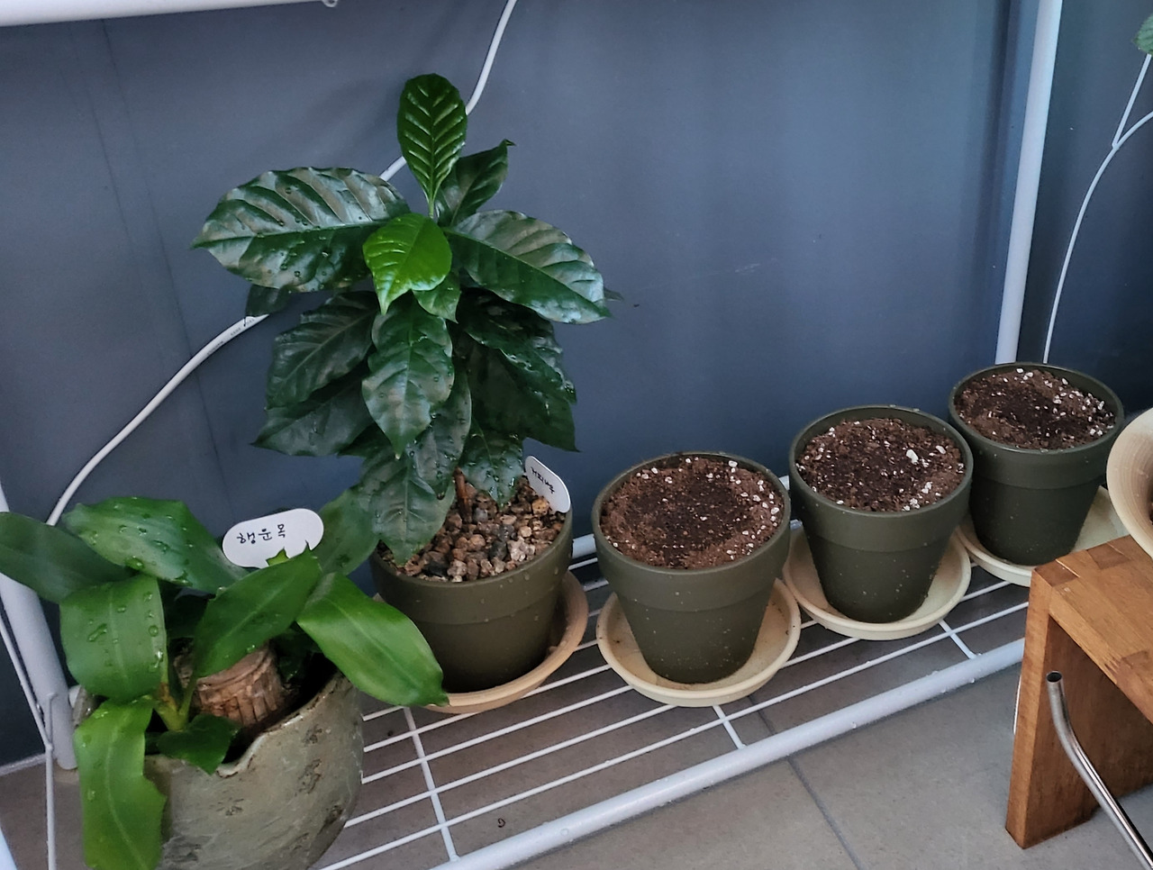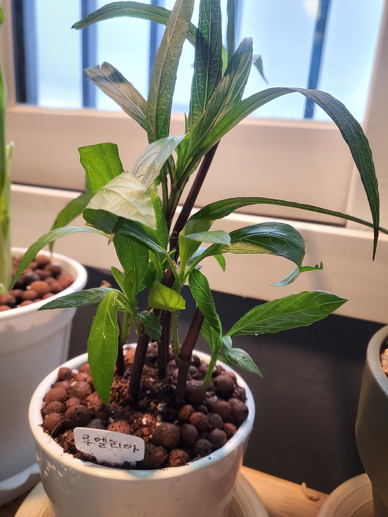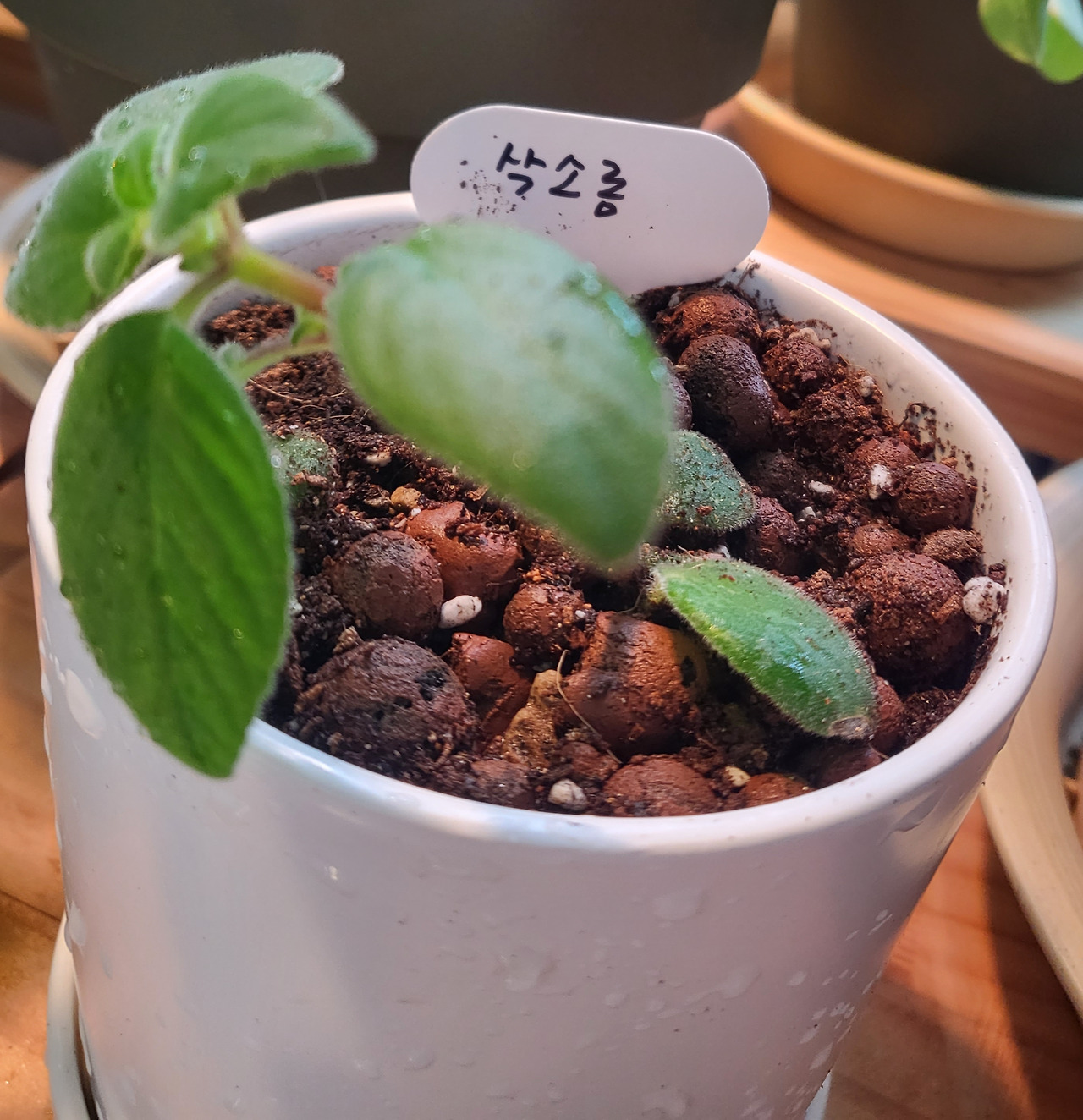 이름표를 달아주고 좀 더 큰 화분에 자리를 잡아주었다.