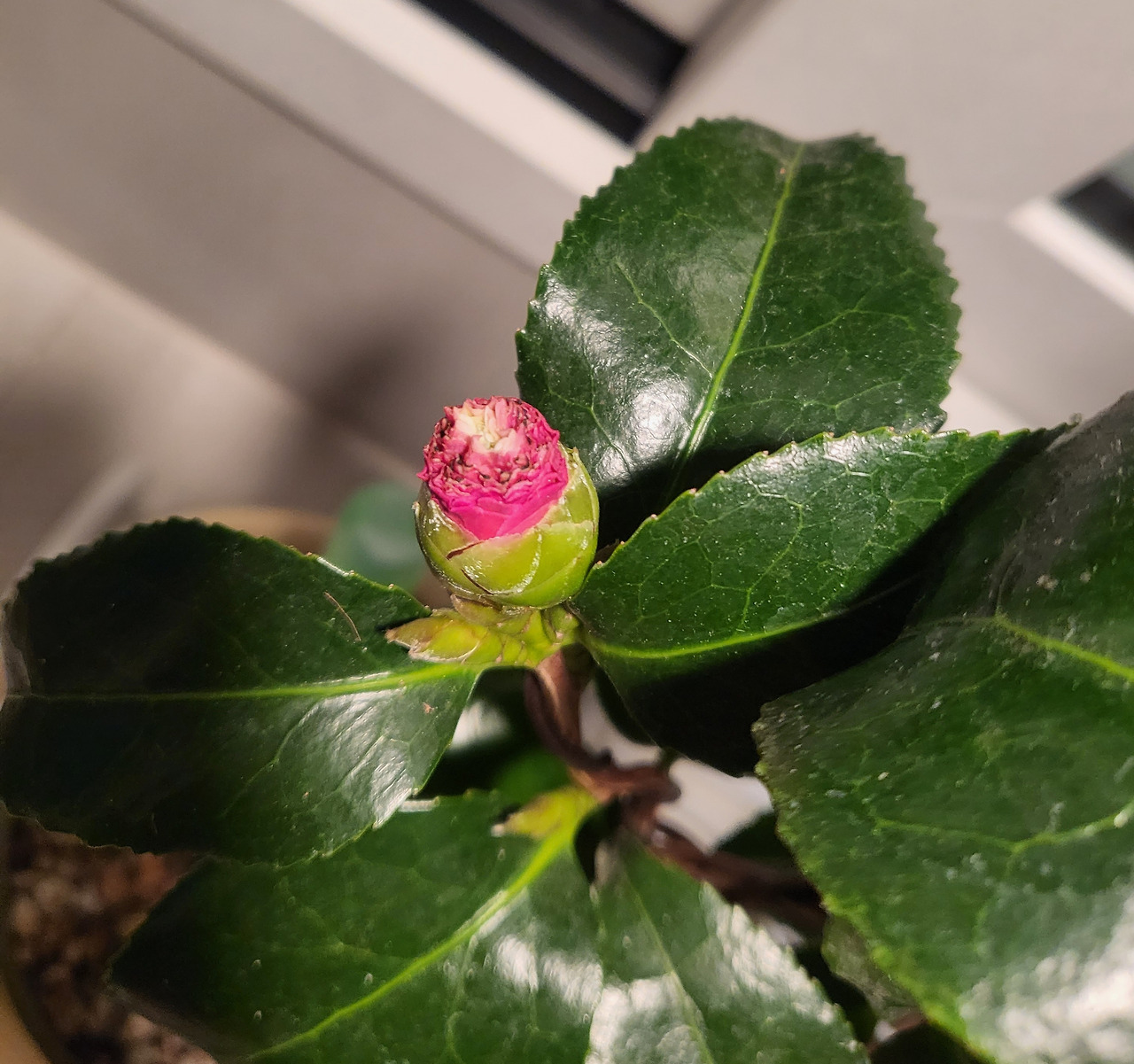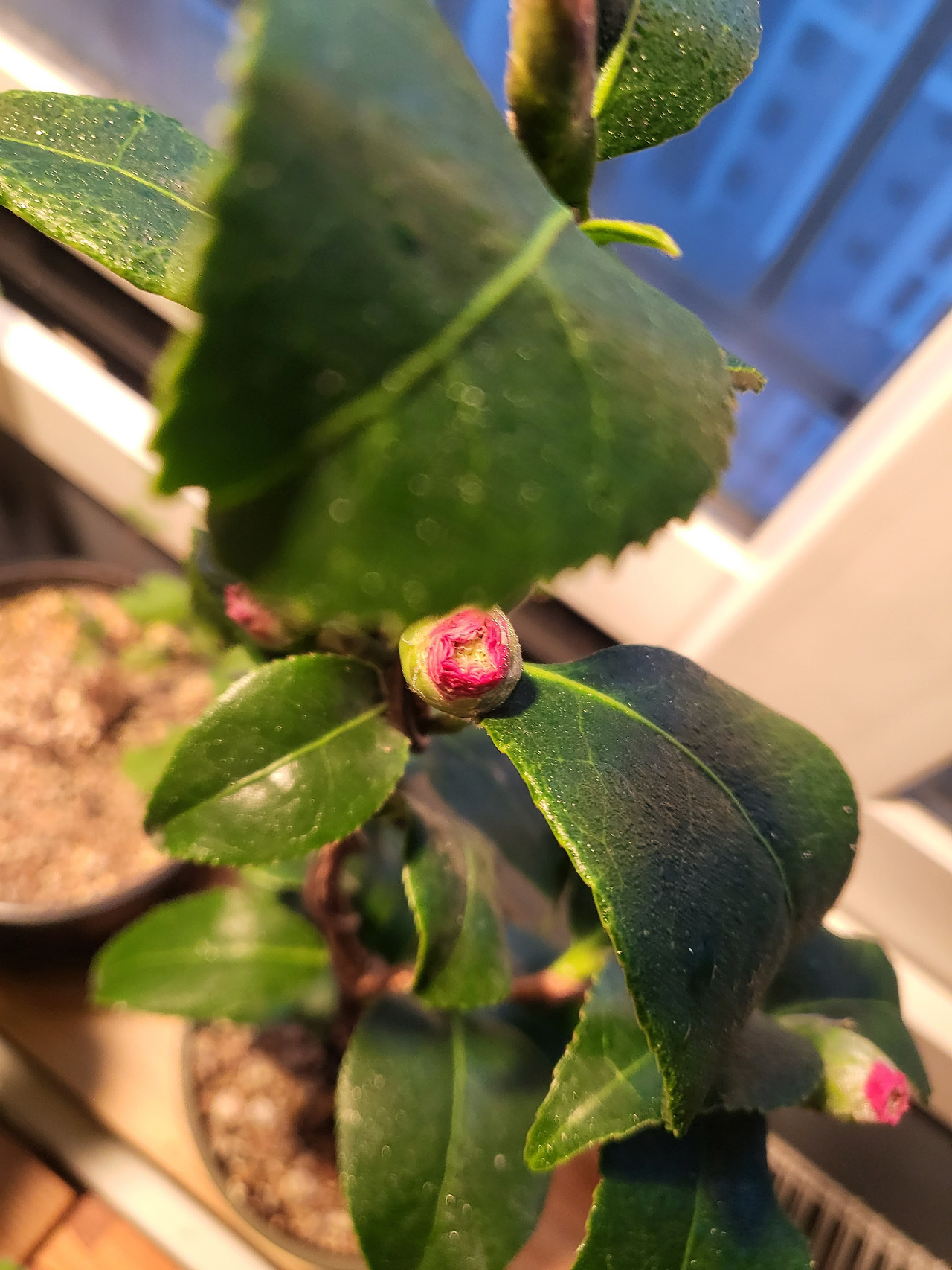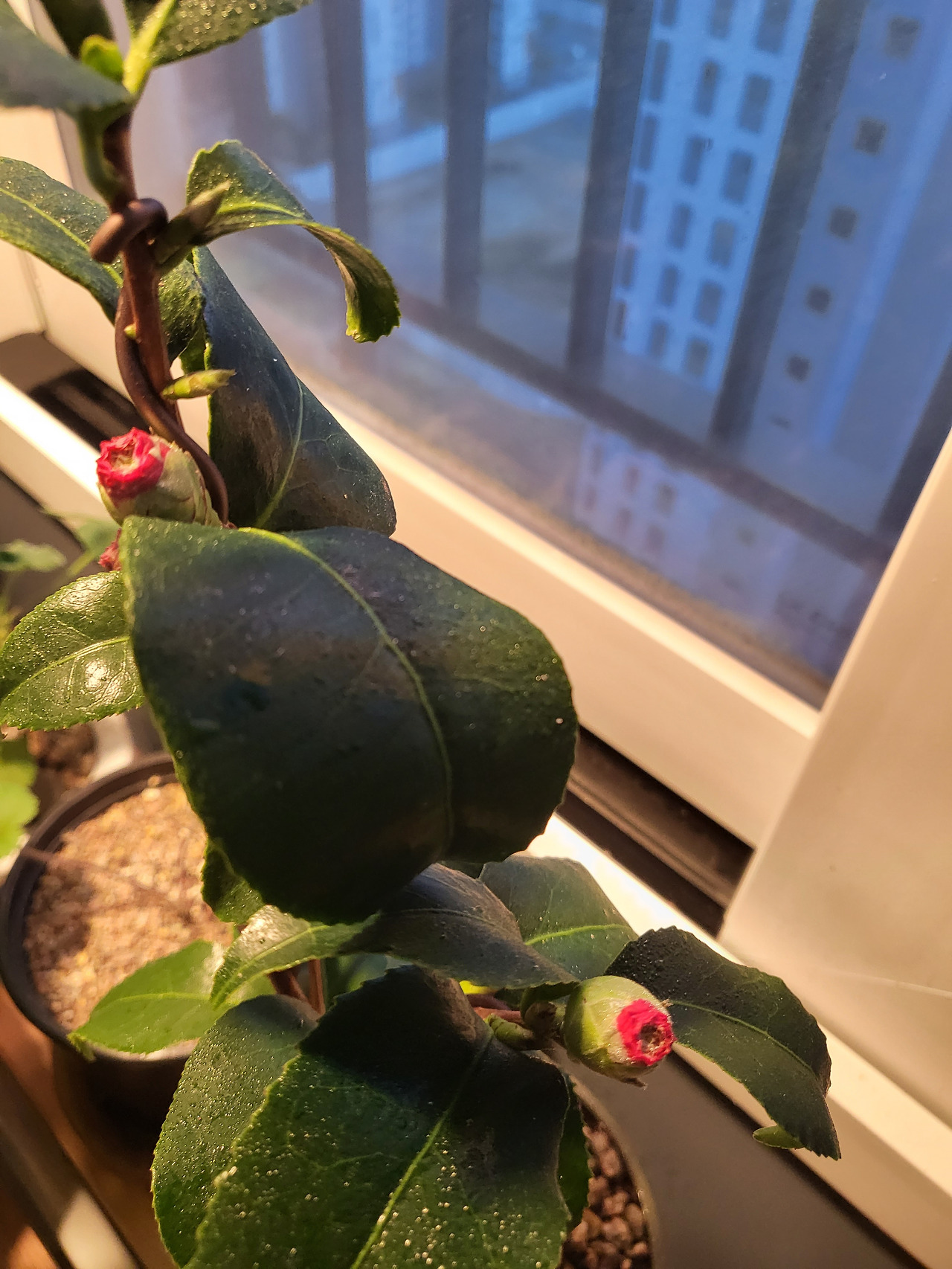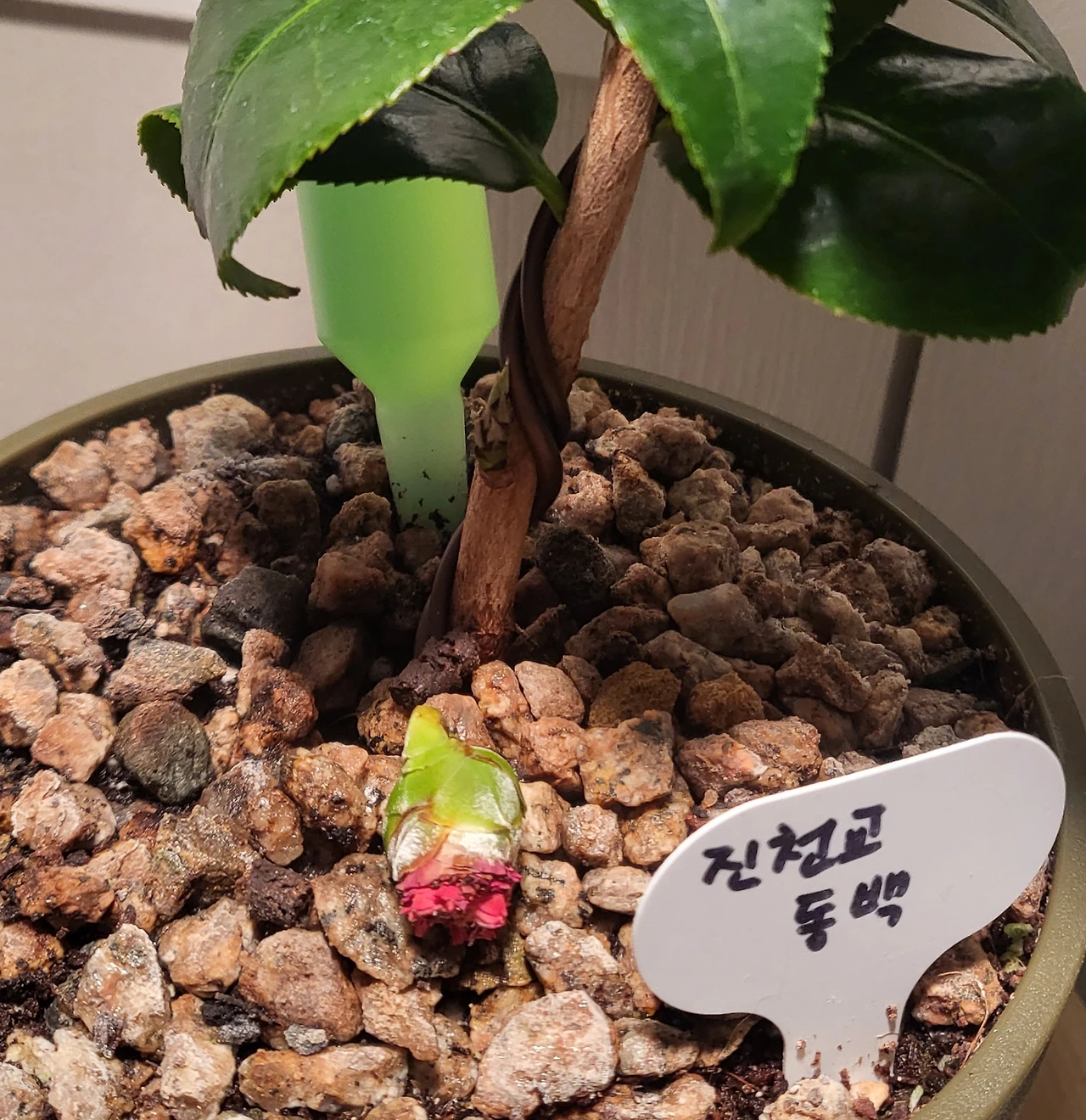 동백나무가 처음 나에게 왔을 때, 운 좋게도 동백의 꽃망울이 세 개 달린 걸 확인하고 기뻤다.