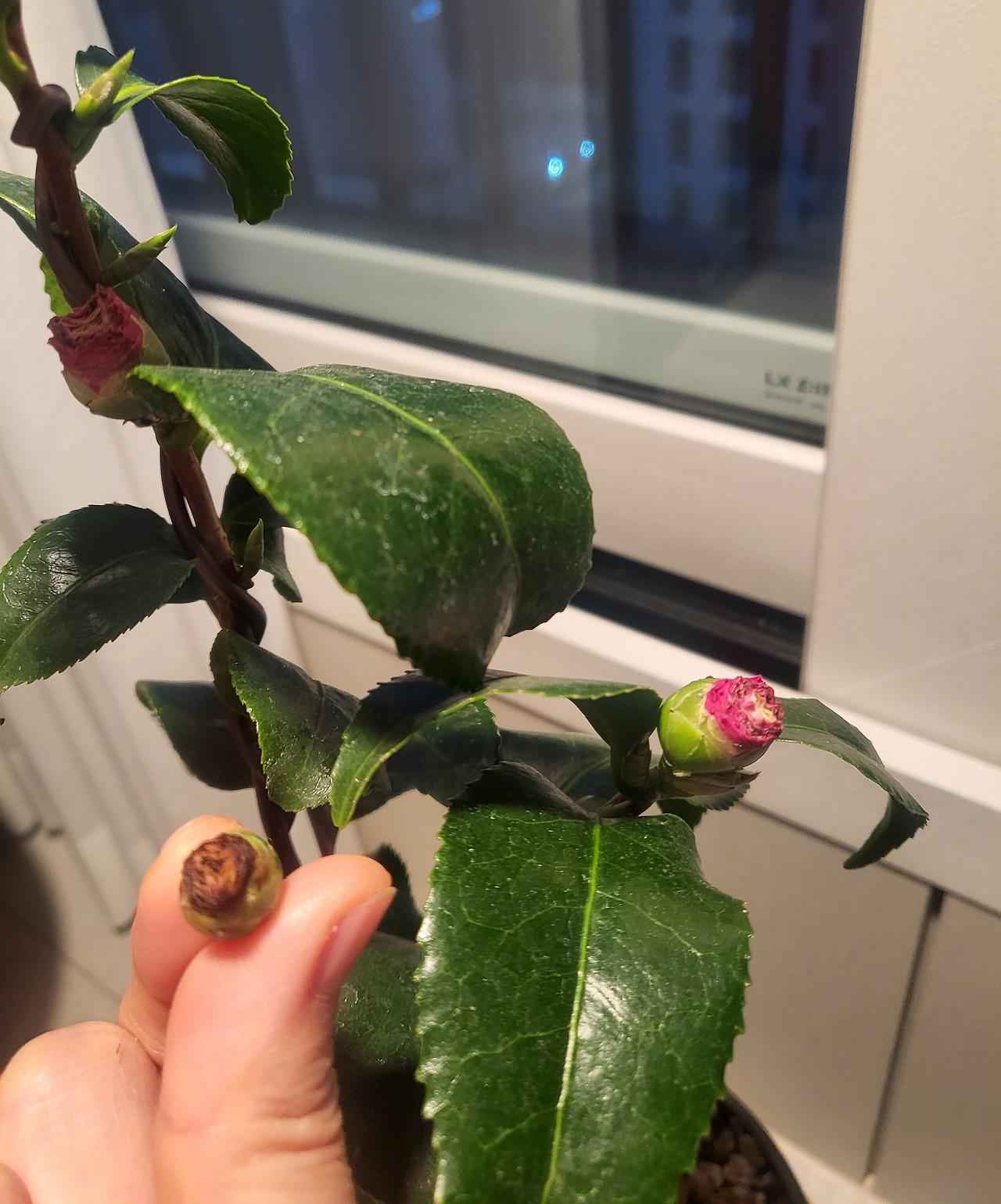동백의 꽃망울이 터지기 시작한 걸 확인한 지 세 달 만에... 꽃망울을 모두 잃었다.
