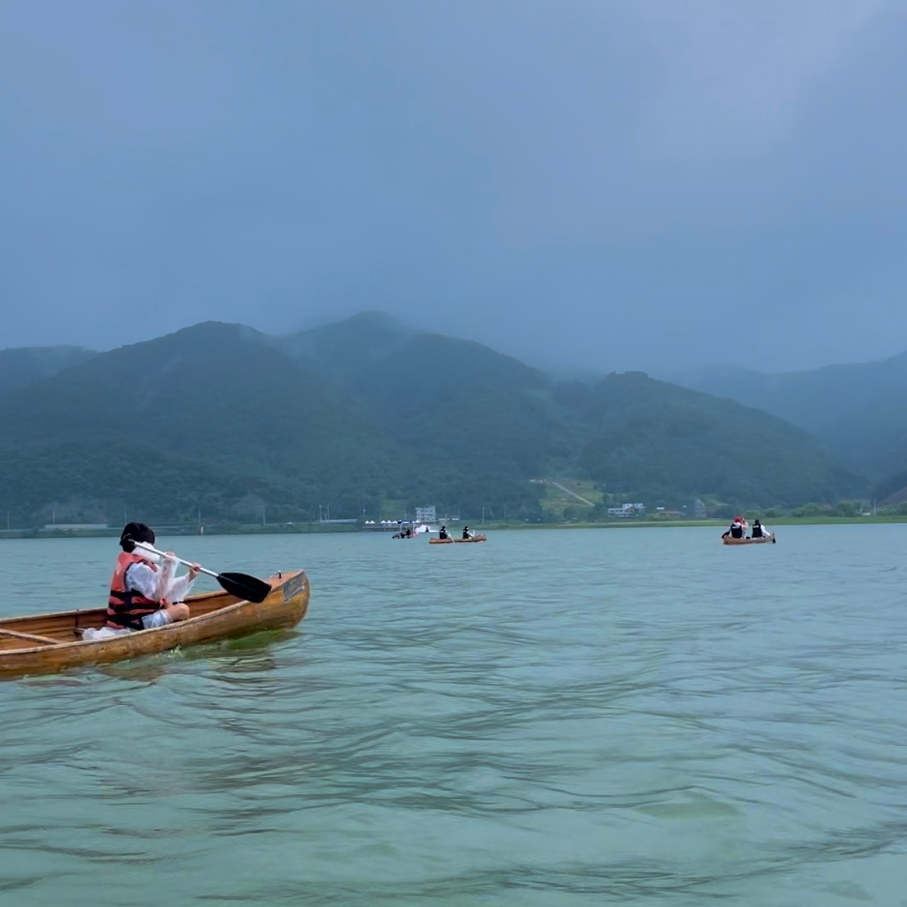 목적지에 도착했다. 차에서 내리니 비바람이 세차게 온몸을 때렸다. 분명 여름인데 너무 추워 닭살이 오소소 돋아났다. 카누 탑승 장소에 다가가니 차에서 봤던 넓은 강이 눈앞에 펼쳐졌다. 조금도 좁혀지지 않은 동일한 강폭이었다. 아니 더 광활해 보였다. 그렇지 않아도 추운데 강물을 보니 두려움에 마음에 더 오싹해졌다. 그런데 우리 말고도 카누를 타기 위해 온 다른 팀이 있었다. 이런 날씨에도 카누가 뜨는 거냐고 물어볼 새도 없이 바로 탑승을 위한 교육이 시작되었다.