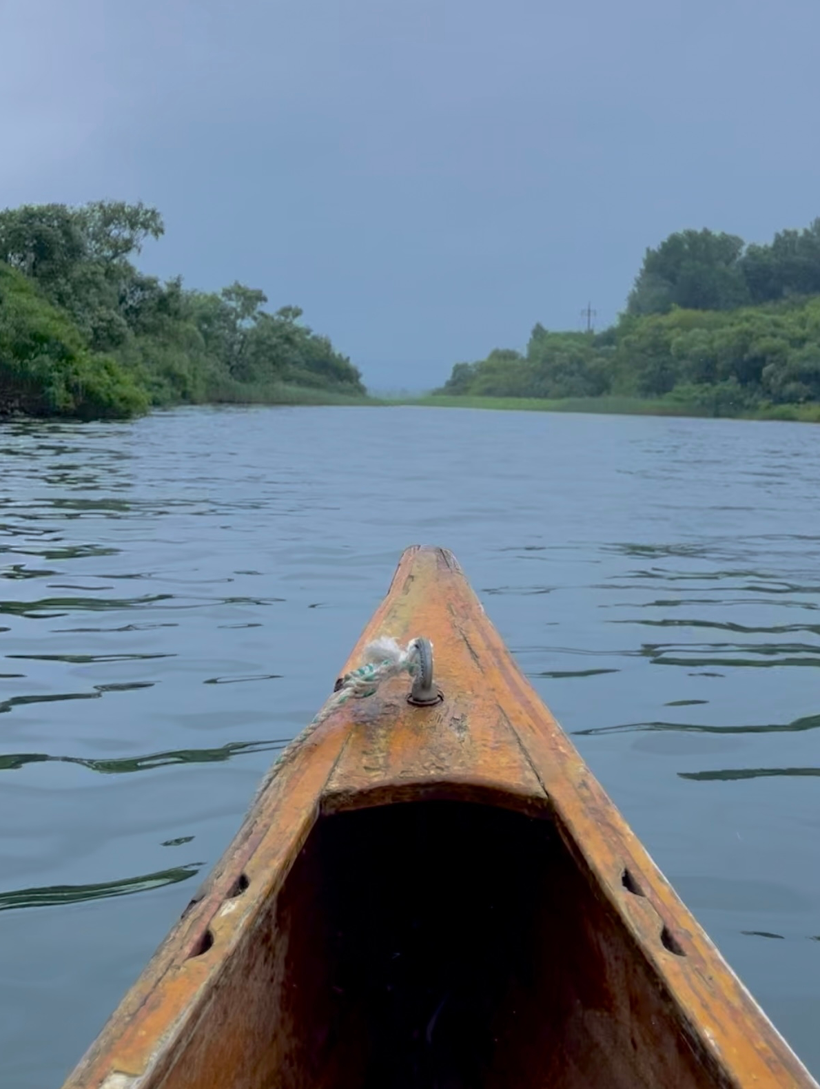 넓은 강물을 가로지른 후 보트가 데려다준 곳은 V자 모양의 습지로 아까보다 안정감이 느껴지는 곳이었다. 비가 내려 수증기를 머금은 초록 습지는 마치 정글처럼 멋있었다. 이곳은 물살도 잔잔했다. 그래도 노 젓는 게 서툴러 자꾸 배가 뭍으로 향했다. 앞자리에 앉은 딸아이는 뱃머리가 뭍에 가서 충돌할 때마다 두려움이 일었나 보다. 이런 체험을 시켜준 엄마가 원망스러운데 엄마를 쳐다보면 균형을 잃고 물에 빠질까 무서워, 뒤도 돌아보지 못하고 구시렁댄다.
