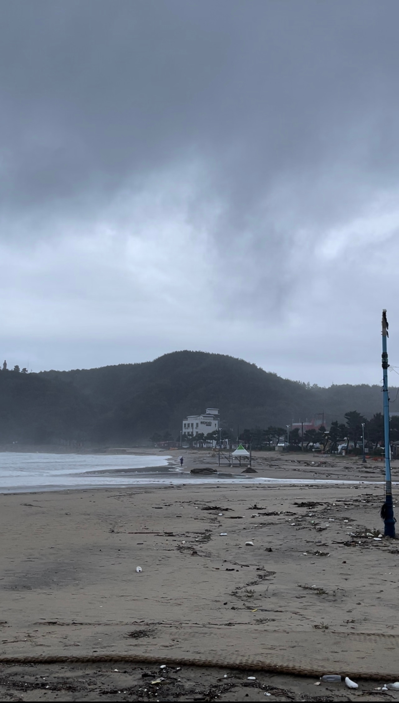 그런 바람과 상관없이 빗방울은 잦아들 줄 몰랐다. 우리는 바닷가 앞에 위치한 카페 겸 식당을 찾아갔다. 바다가 가까워지니 바람이 더욱 세차게 불었다. 추웠다. 아이들을 깨웠다.