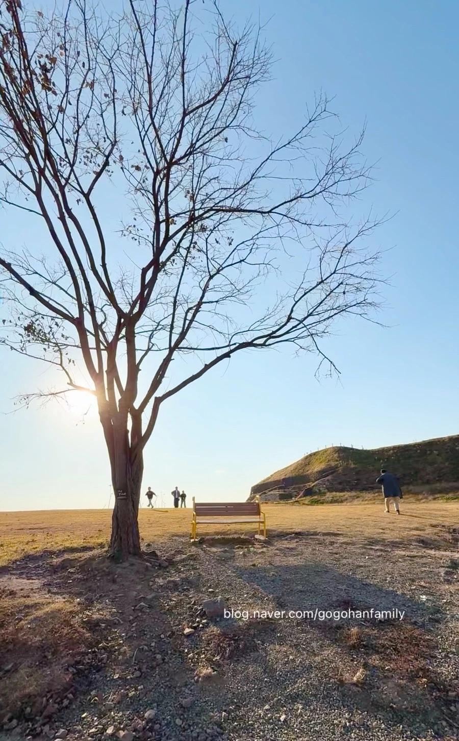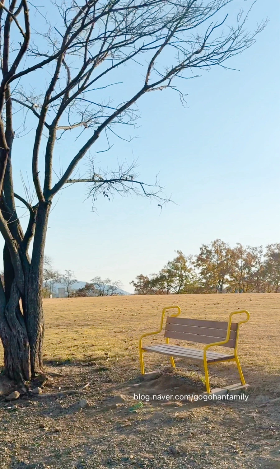 나무 한 그루와 벤치가 멋진 풍경을 이루고 있네요.