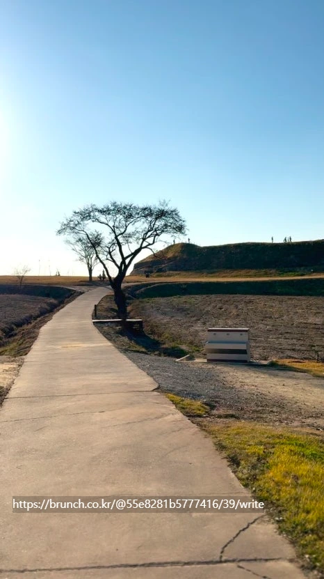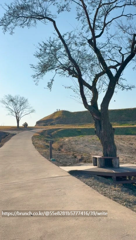 나무 뒤편, 구릉처럼 보이는 저곳이 오늘의 목적지입니다,