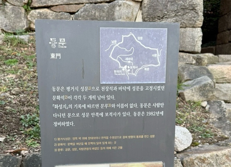 동문을 시작으로 북문, 서문, 암문(비밀통로), 남문 순서로