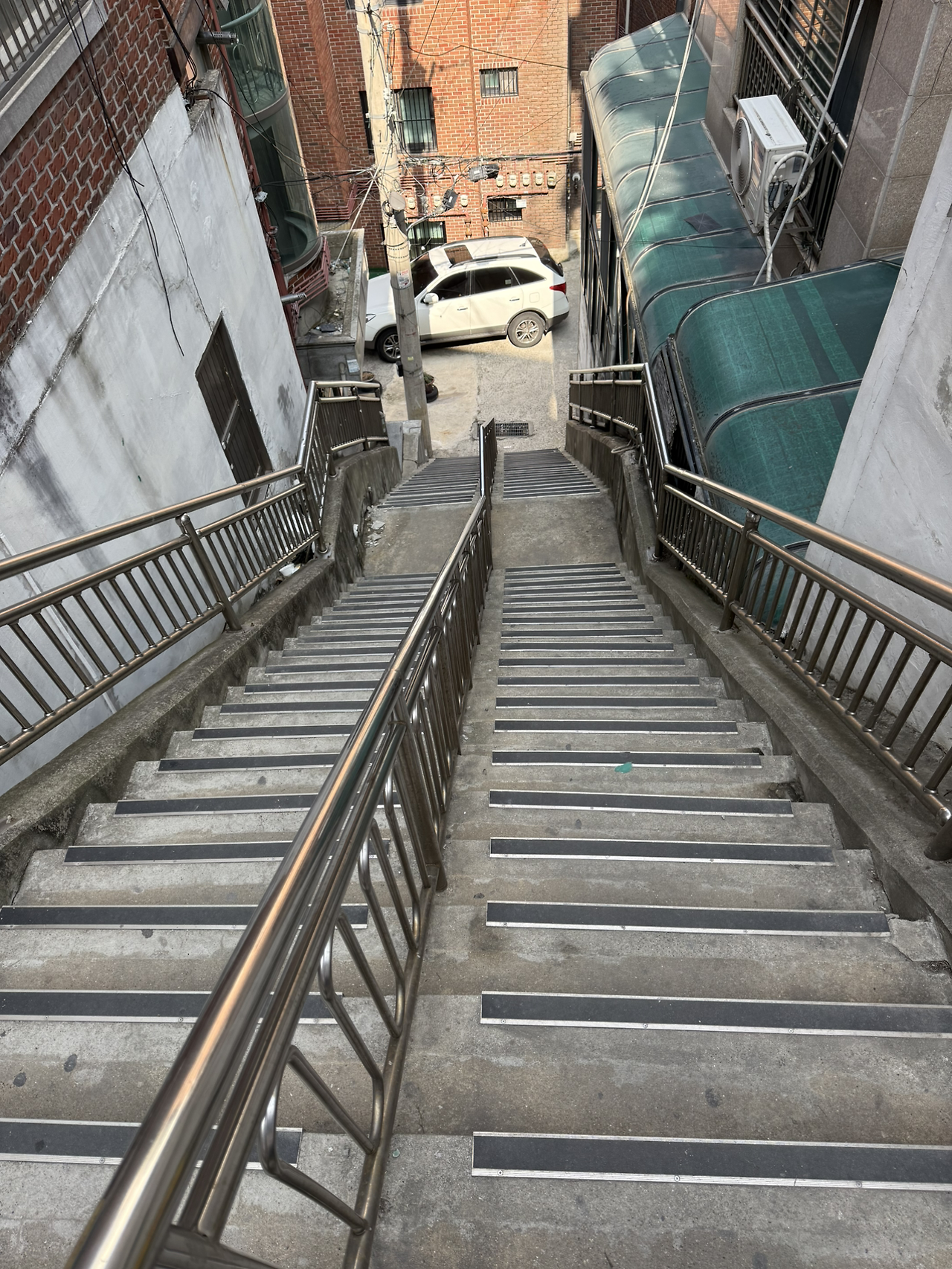 나도 나이가 들면 이렇게 아무나 붙잡고 인생이야기를 하게 될까? 또 다른 잡념이 떠올랐다. 요상한 계단이다.