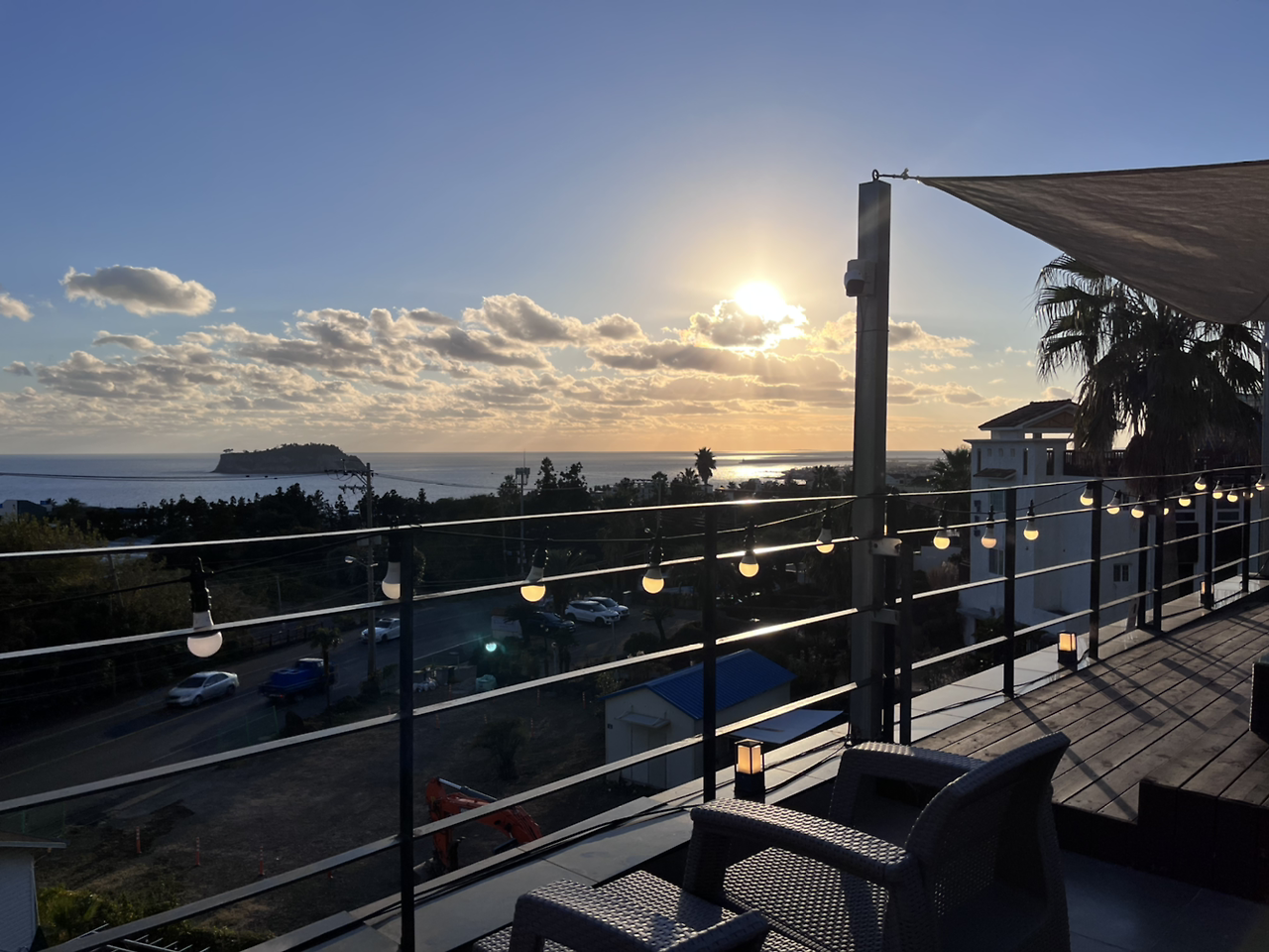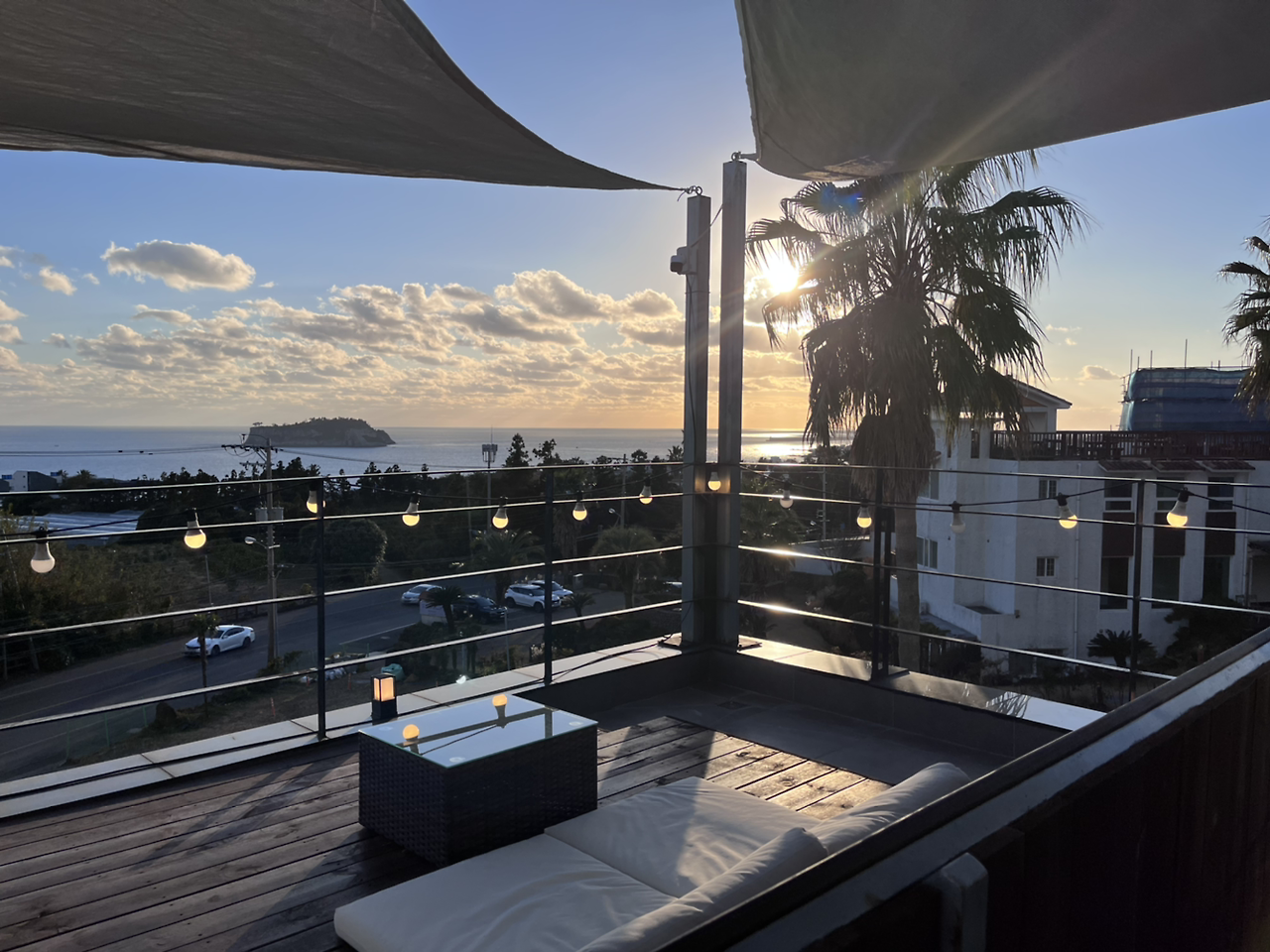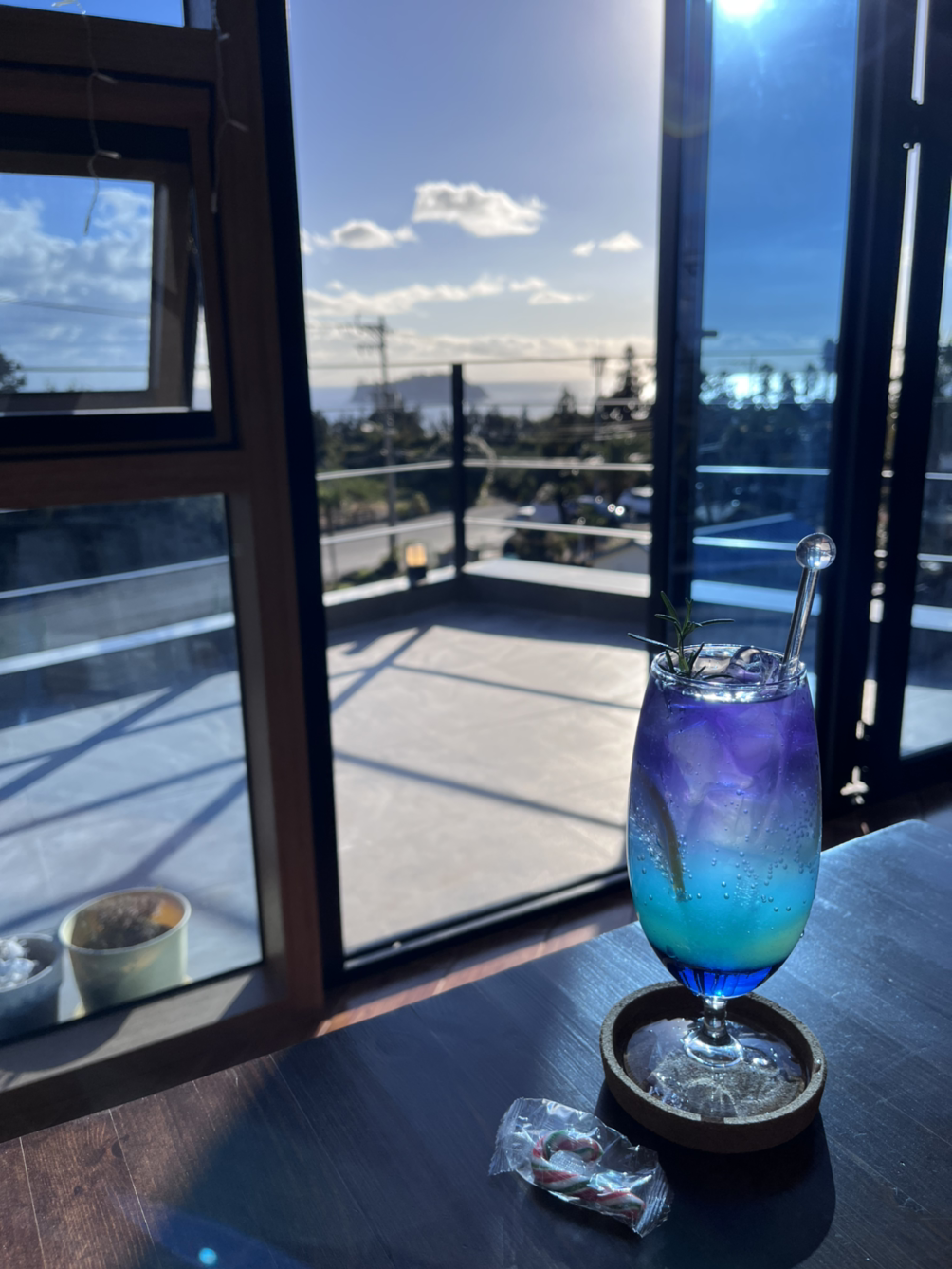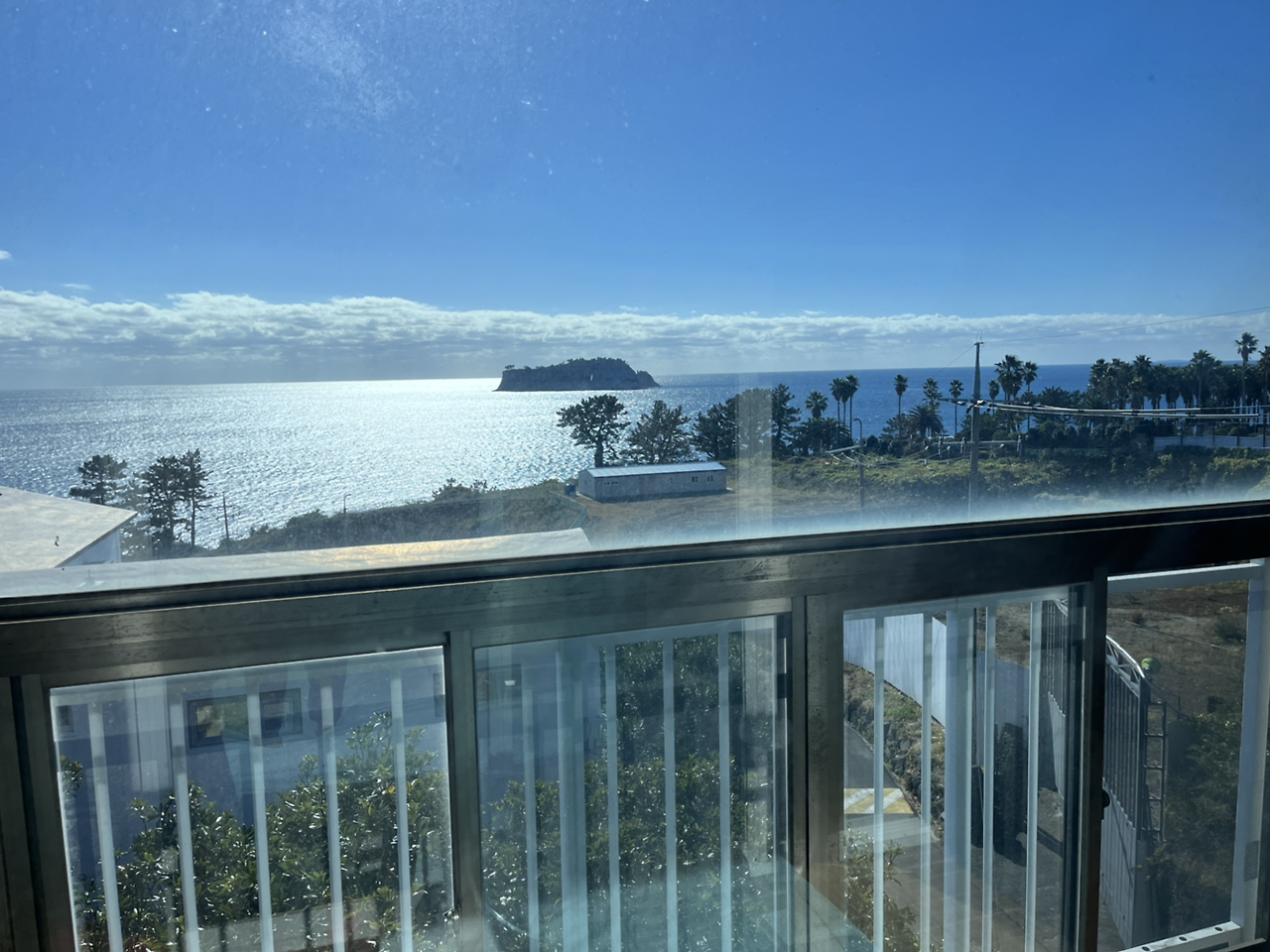 여기저기 카톡을 보내고 빈둥거리다 보니 2시가 되었다. 햇살에 부서지는 썬 캐처의 햇빛과 바다가 너무 눈부시게 좋은 날씨였고. 아름다운 광경에 숙소의 풍경과 바다를 영상으로 조금 찍었다. 이래저래 뒹굴거리다가 준비를 하고 늘 나가는 길에 지나가며 보기만 했던 "앤유"카페에 가기로 했다.