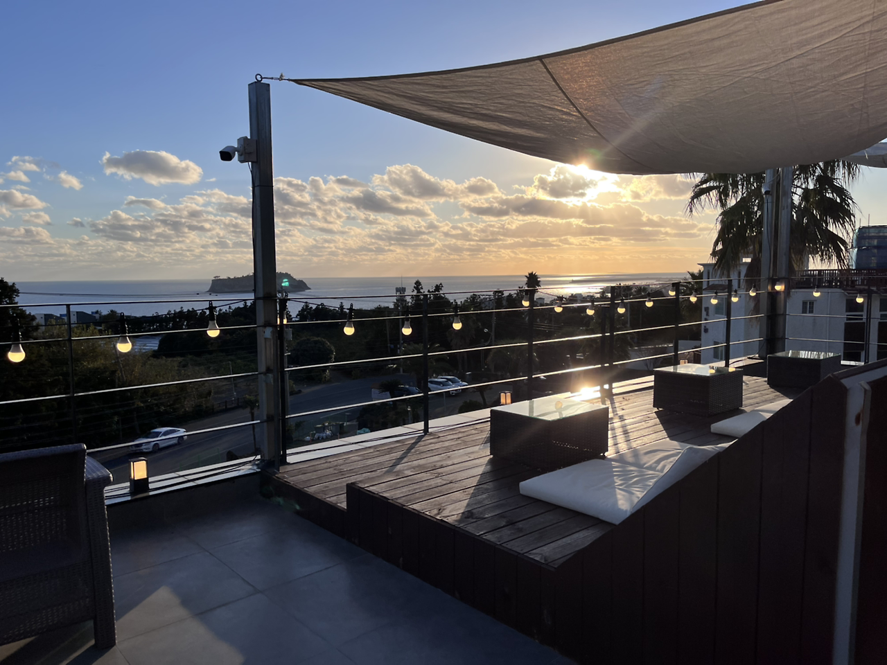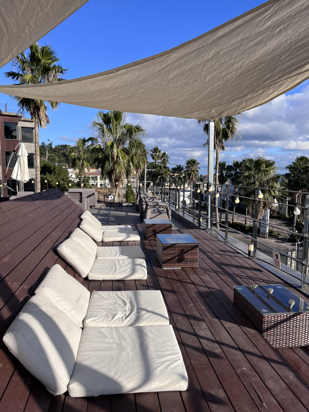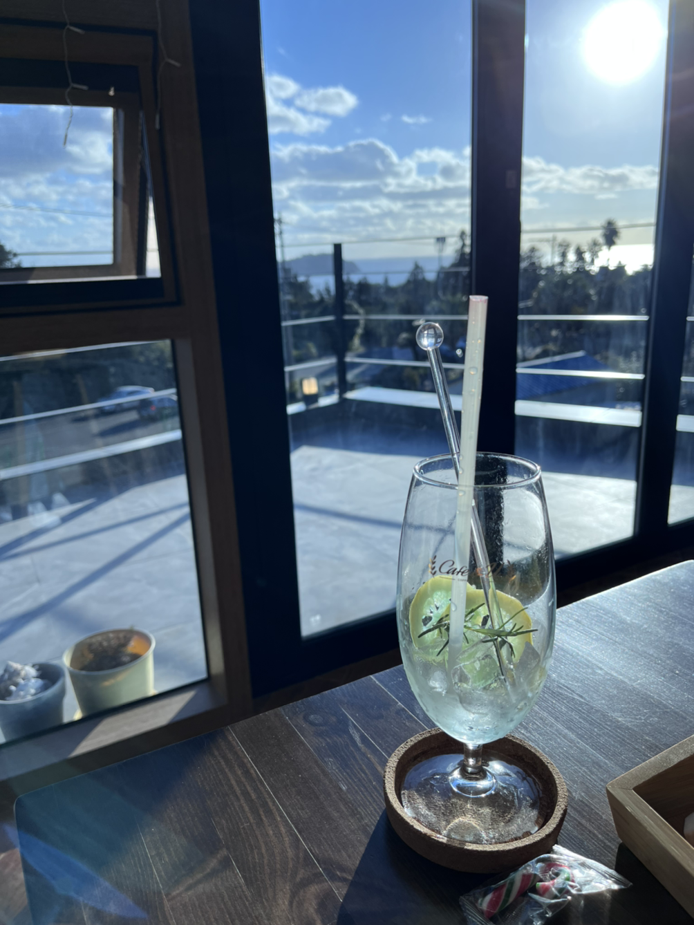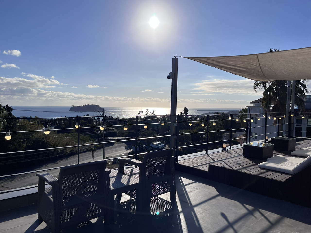 여기저기 카톡을 보내고 빈둥거리다 보니 2시가 되었다. 햇살에 부서지는 썬 캐처의 햇빛과 바다가 너무 눈부시게 좋은 날씨였고. 아름다운 광경에 숙소의 풍경과 바다를 영상으로 조금 찍었다. 이래저래 뒹굴거리다가 준비를 하고 늘 나가는 길에 지나가며 보기만 했던 "앤유"카페에 가기로 했다.