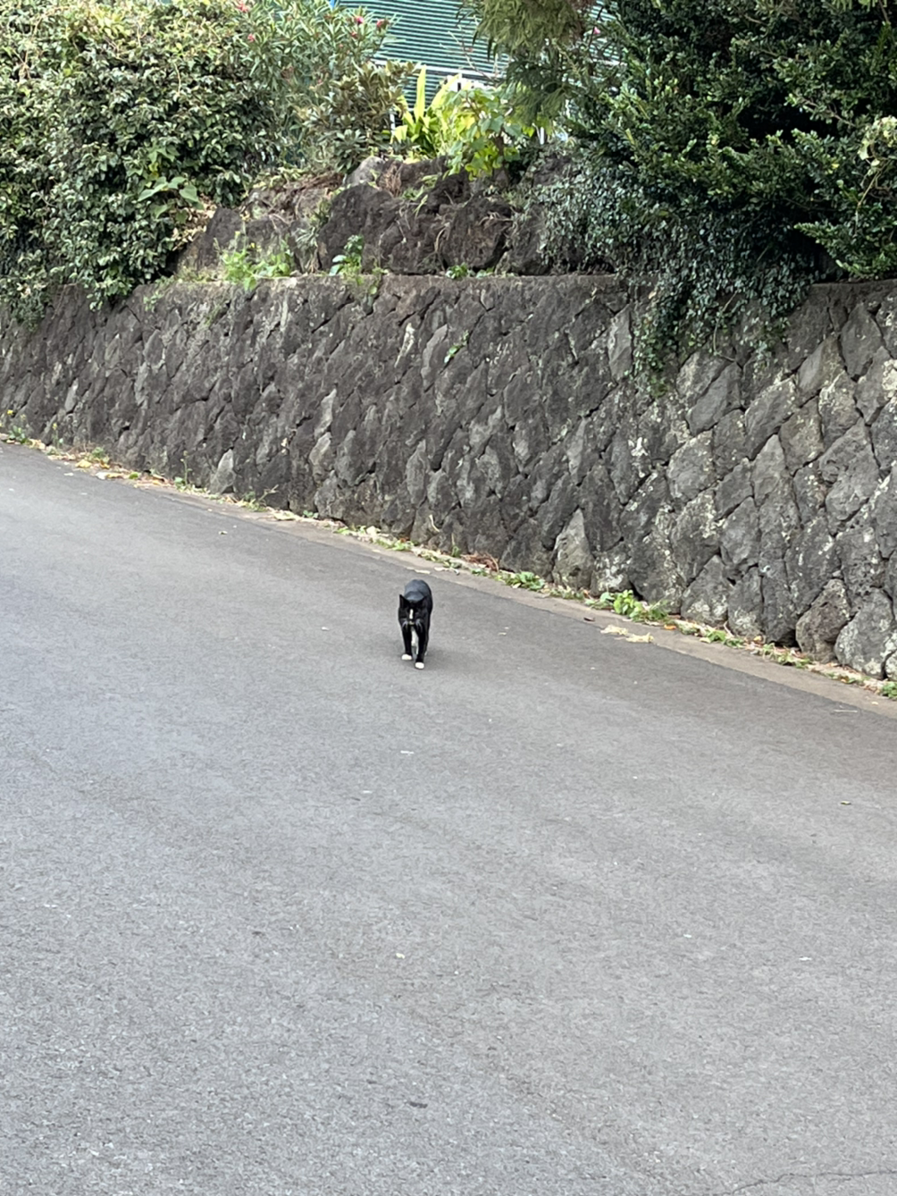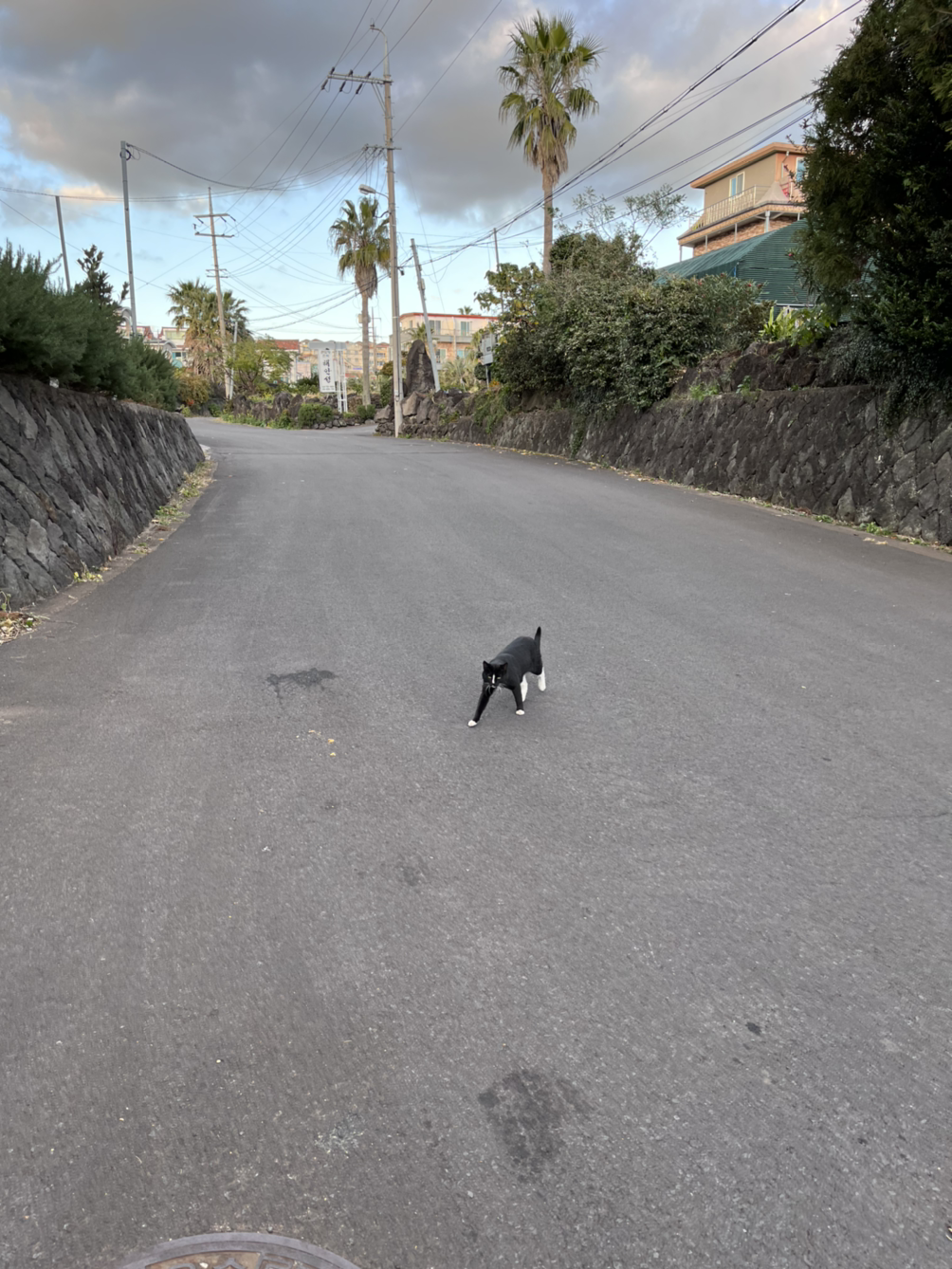 다시 숙소 쪽을 통해 올라가는데 이번엔 검은 턱시도에 긴 양말을 신은 고양이가 또 바보같이 내쪽을 향해 오다가 갈피를 잃고 당황하는 거다.