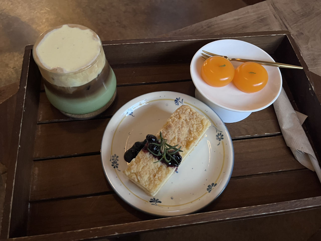 메뉴도 귤 양갱이라는 눈을 사로잡는 메뉴가 있어서 원래 커피 메뉴에 레몬 어쩌고 케이크만 시키려고 했는데 세 가지를 안 시킬 수가 없는 비주 얼의 시즌 메뉴 귤 양갱이었다.