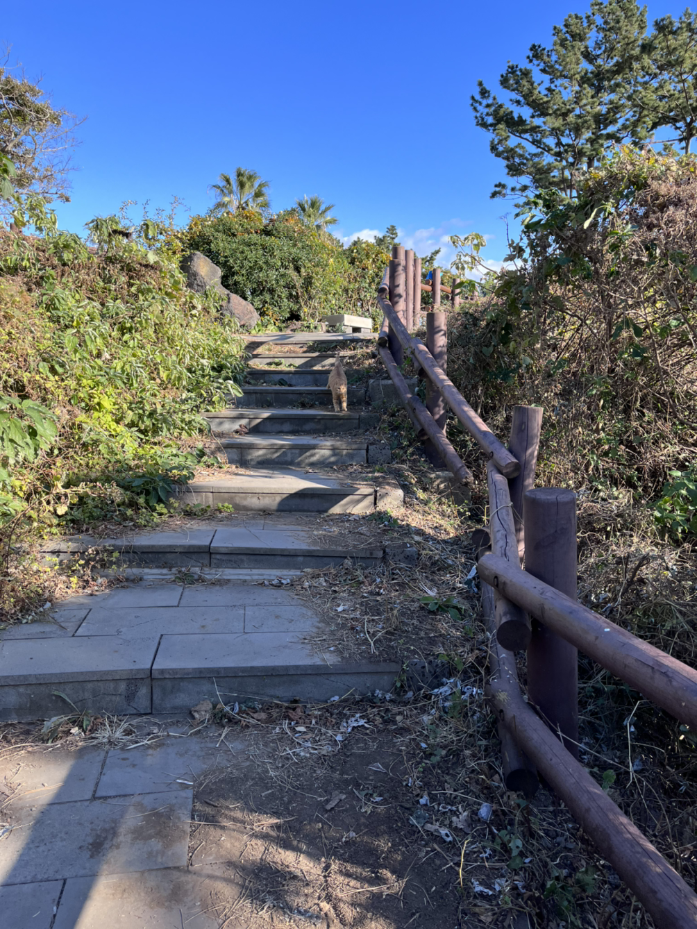 또다시 올레 7길을 걸어오는데 오늘은 올레길 초입에 웬 노랑 고양이가 뒷모습으로 긴장감 없이 있다 뒤늦게 나를 발견하고 난간 너머 풀숲으로 넘어가는데, 참으로 그 모습이 어리석기 짝이 없었다. 서울의 매운맛을 모르는 여유로움이 느껴지는 고양이였다.
