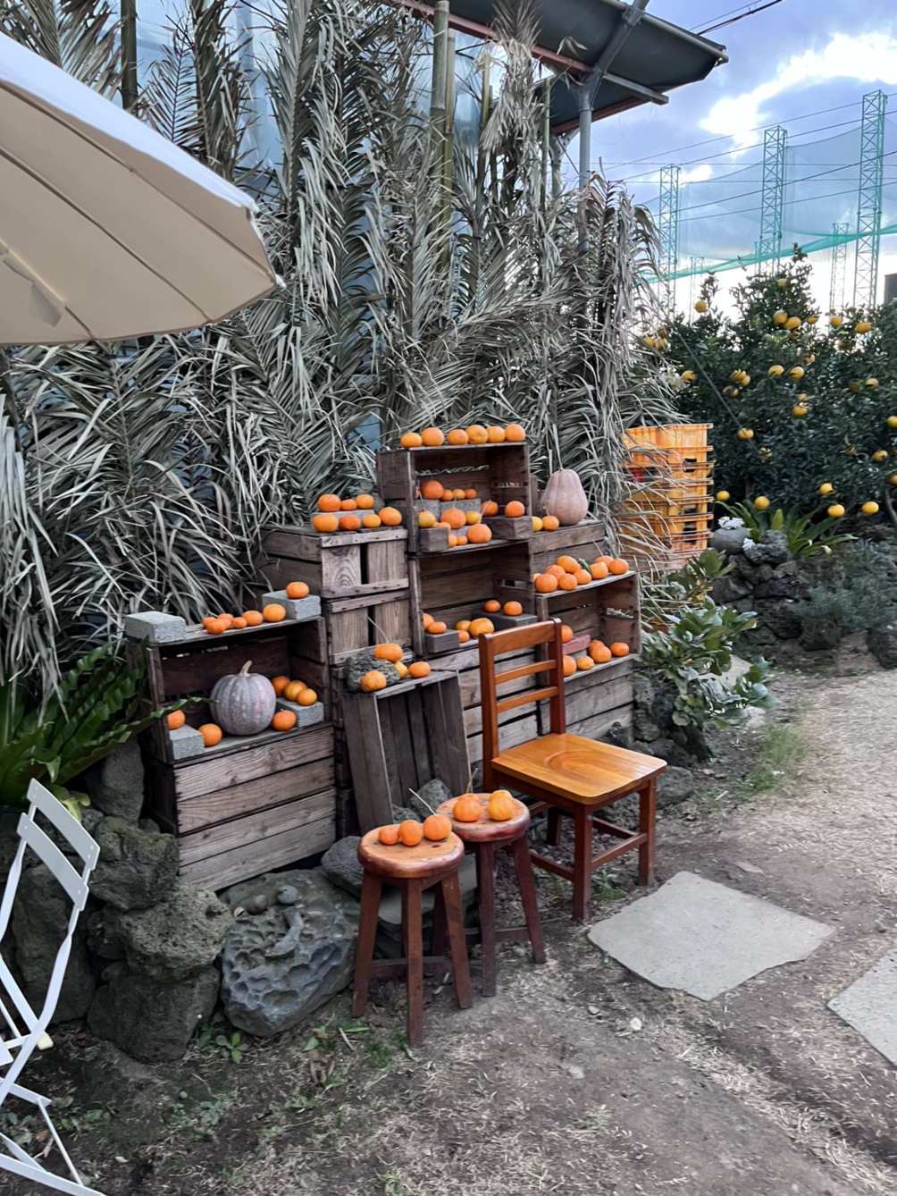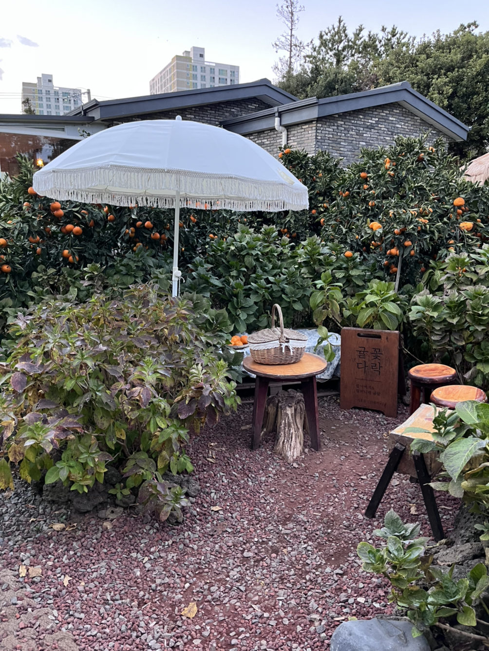 "귤꽃 다락"이라는 카페가 주욱 가면 나왔는데 바다가 아니고 귤 뷰라 크게 기대가 되지 않았지만 신경 쓴 느낌이 많이 나고, 괜찮다는 리뷰를 보고 가보기로 했다.