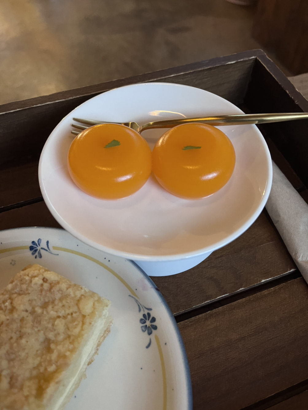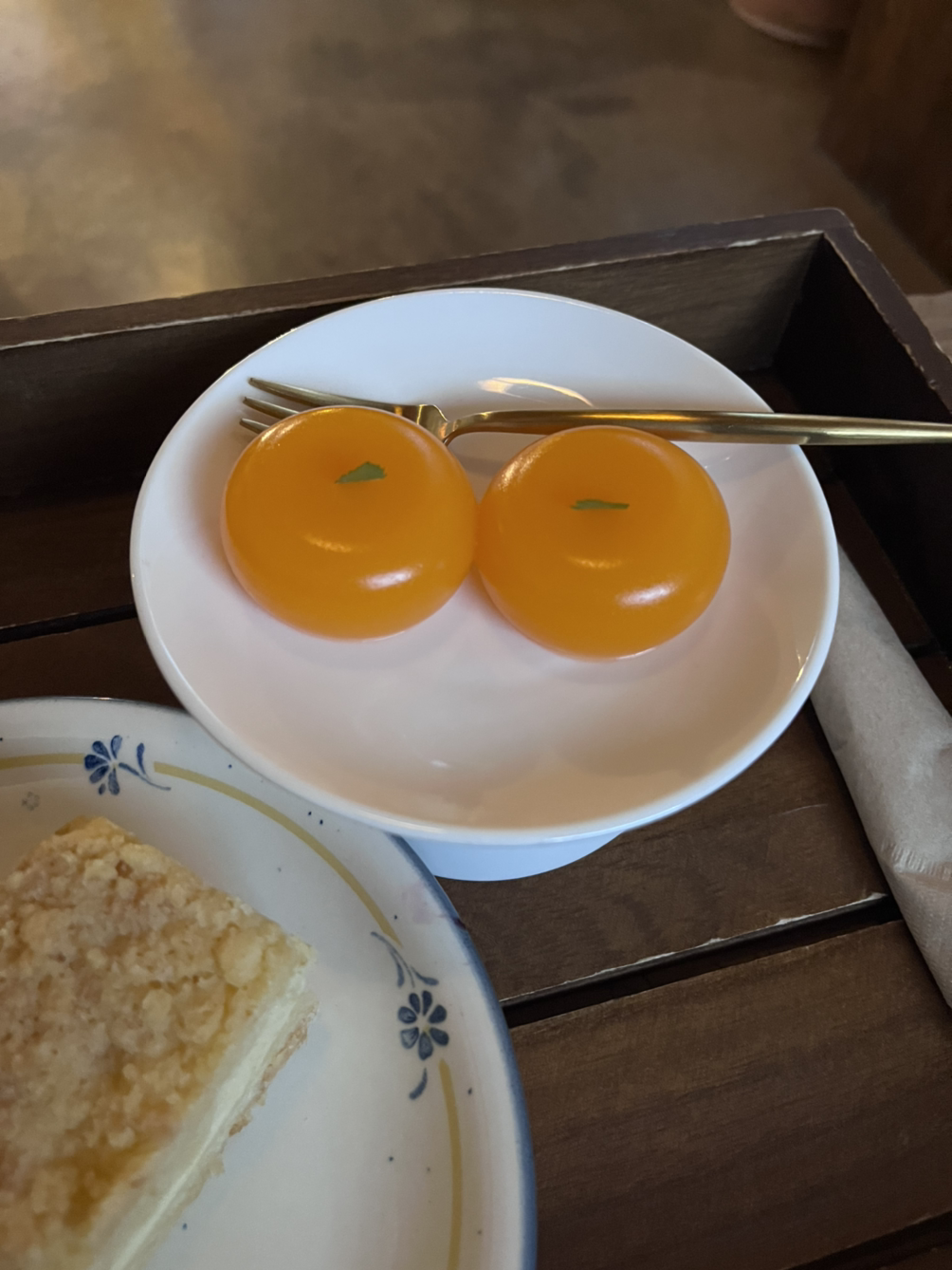 귤 양갱이 정말 귀엽고 탱글하게 생겼는데 맛은 훨씬 더 뛰어난 것이다! 양갱이라는 틀을 깨고 굉장히 상큼하고 탱탱한 젤리 푸딩 같은 느낌의 디저트였다! 포장해가고 싶을 정도야.