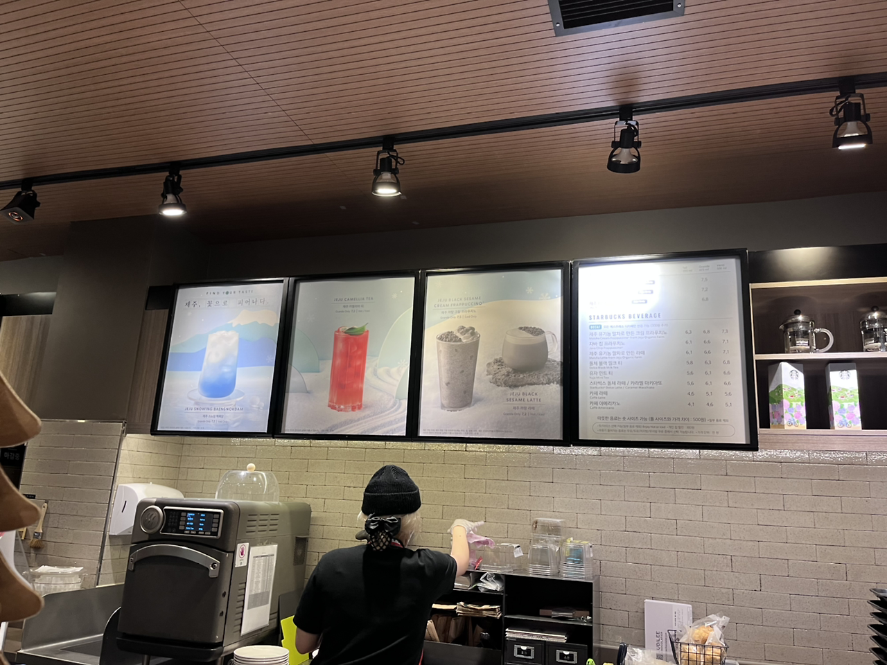 네이버 지도가 또 버스가 한대뿐인 걸 소개해줬다. 버스 많은 쪽으로 가려면 스벅 근방으로 가야 하기 때문에 거기 간 김에 스벅 커피도 제주 특별 메뉴를 테이크 아웃해가기로 생각하고 들렀다.